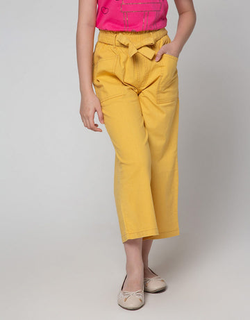 Aero Long Pants Solid Culottes with Ribbon Waist