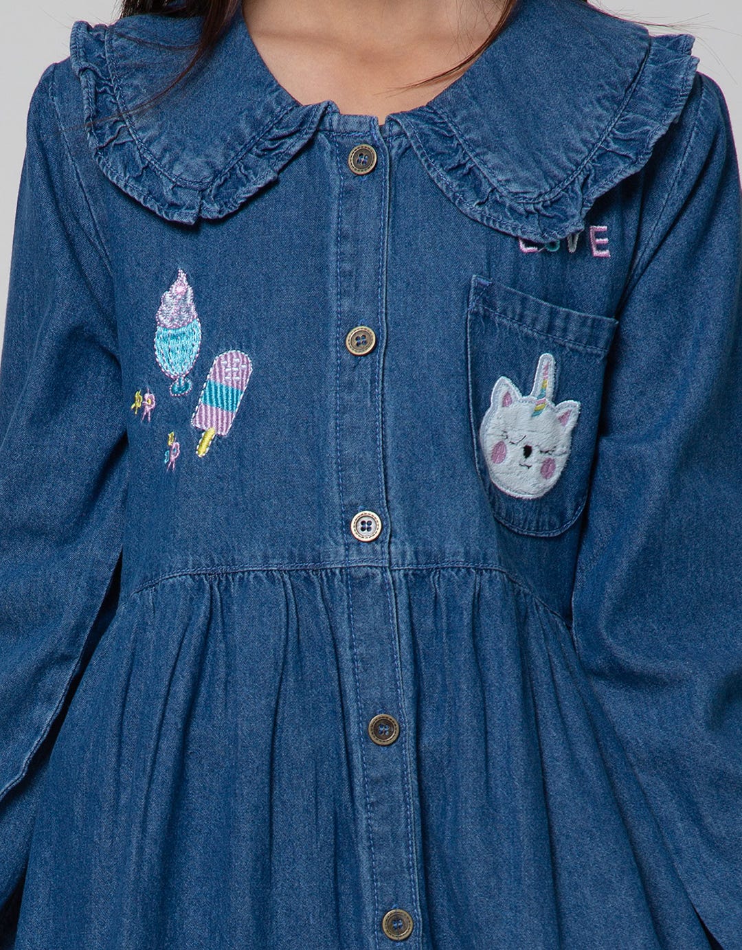 Aero Long Sleeve Midi Dress Denim Ruffle