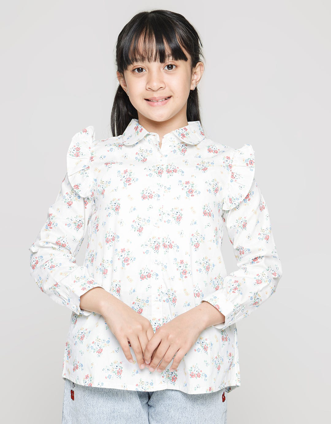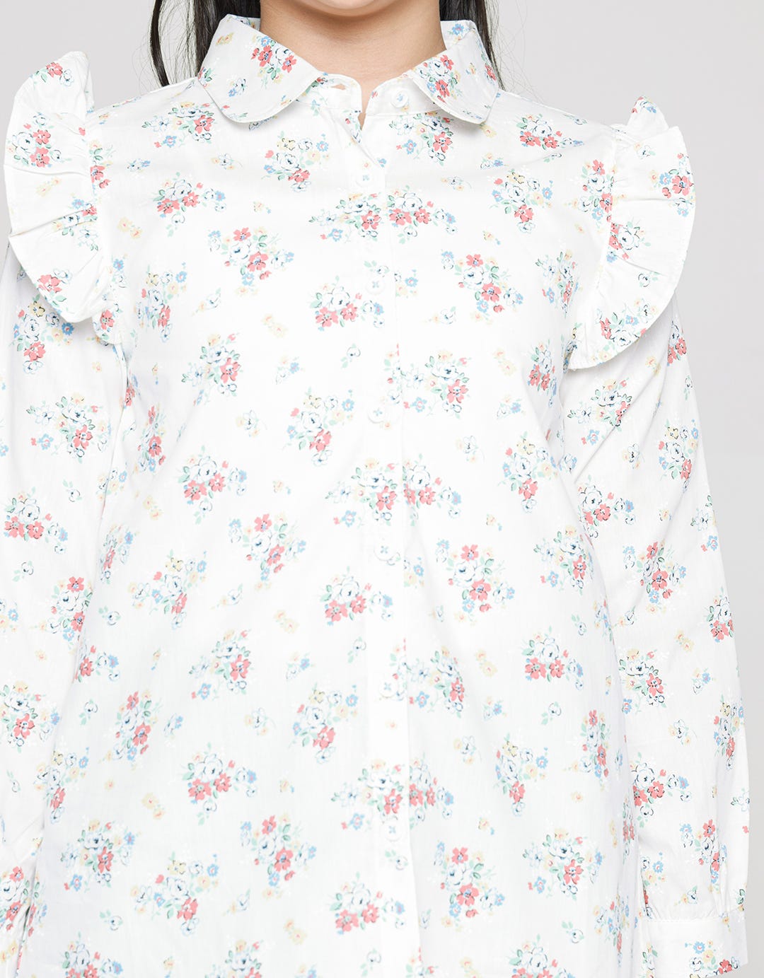 Aero Long Sleeve Shirt Print Flower Shoulder Geber
