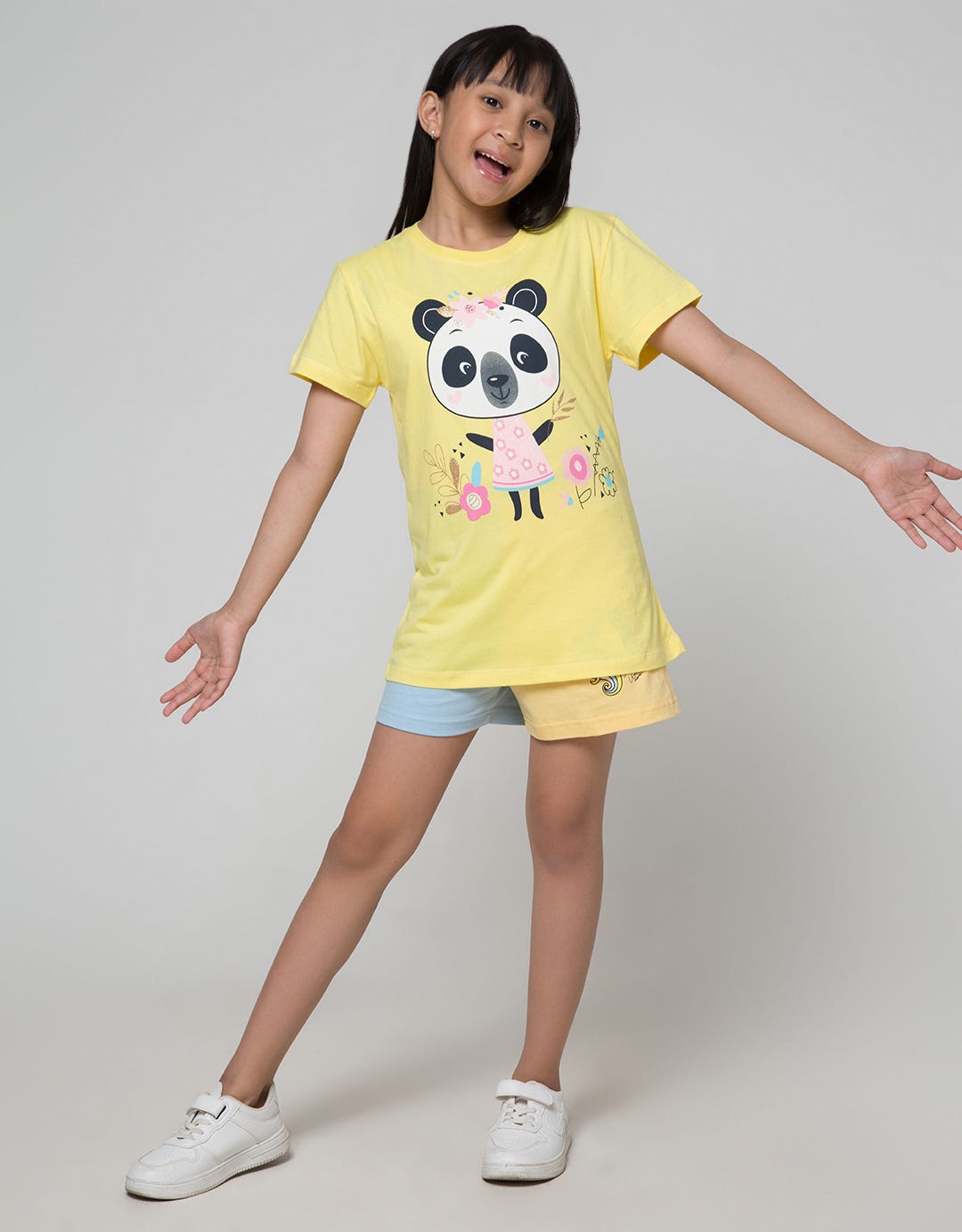 Aero Panda Flower Print Girls T-Shirt