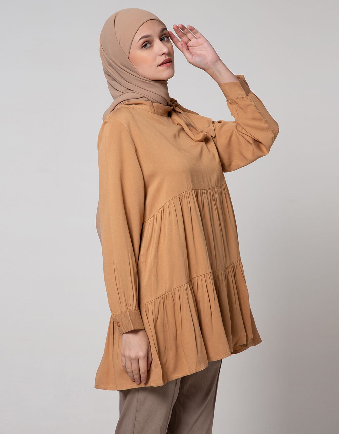 Annisa Long Sleeve Blouse High Neck Tiered Top