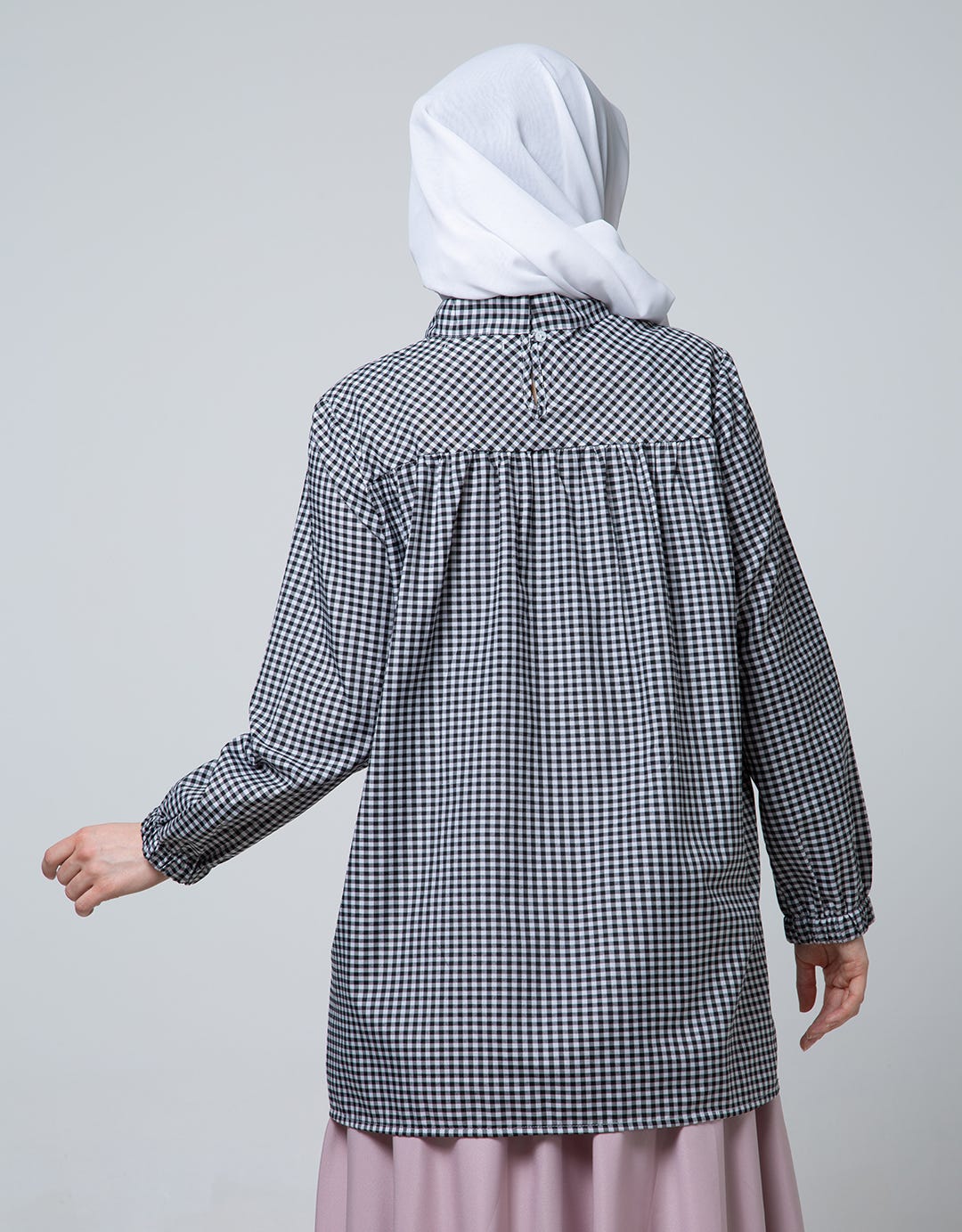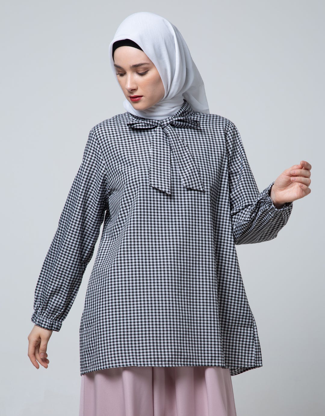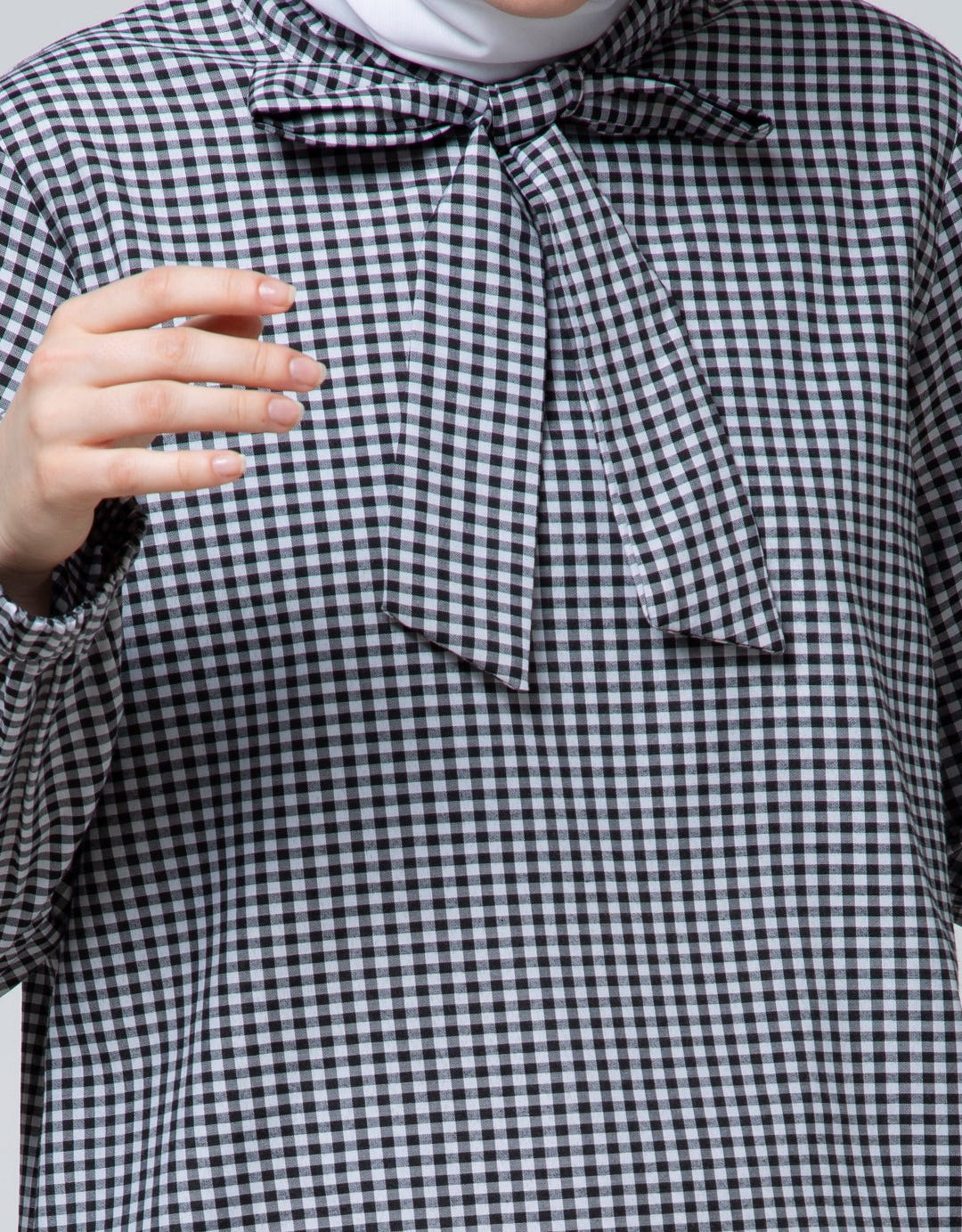 Annisa Long Sleeve Blouse Oversized Gingham With Bow Tie