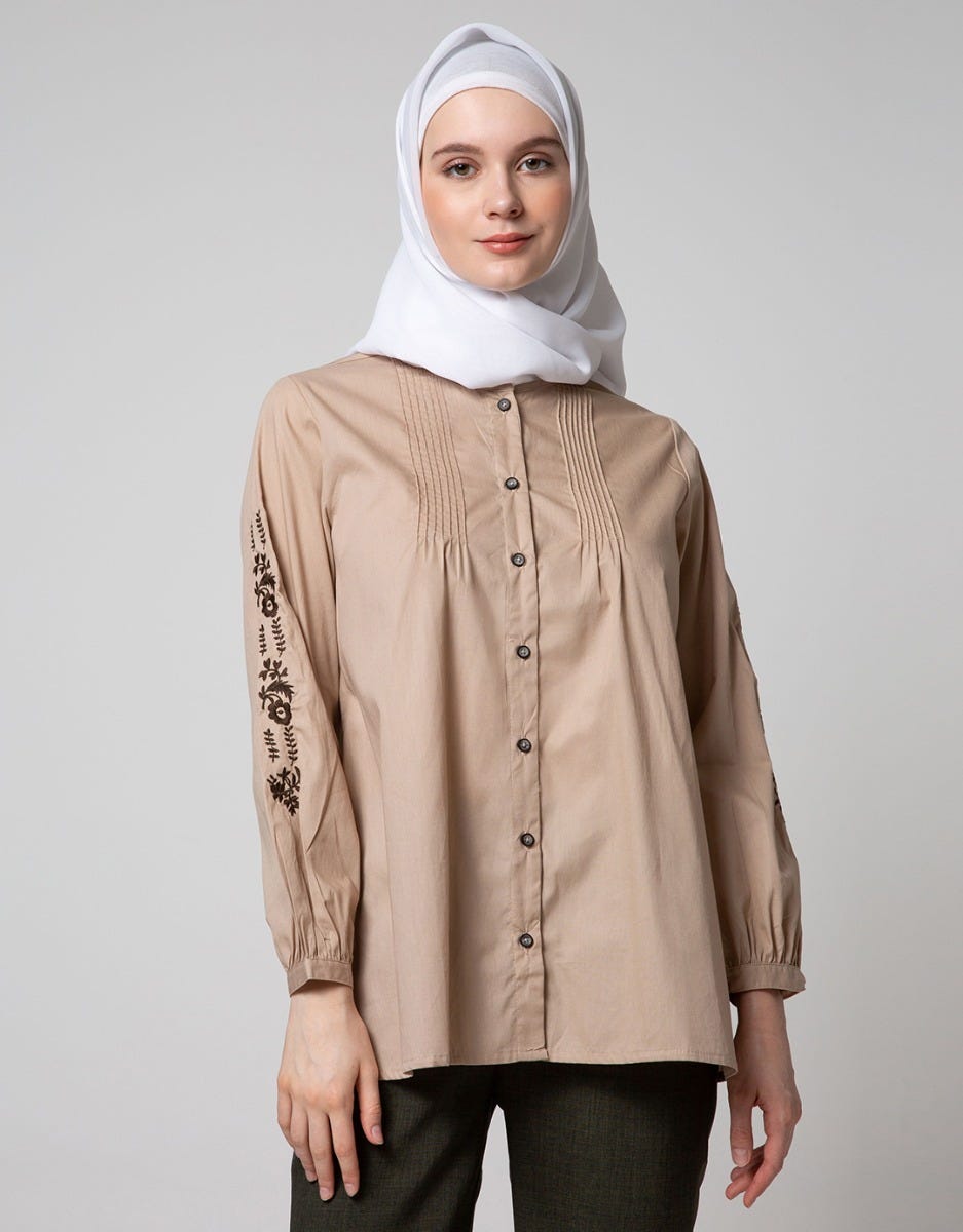 Annisa Long Sleeve Blouse V-Neck Embro Sleeve