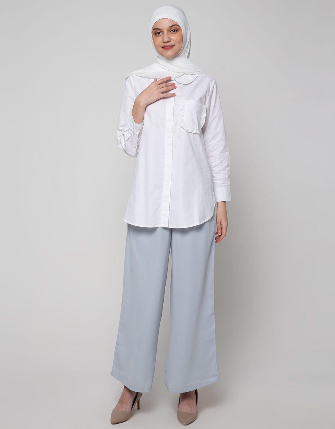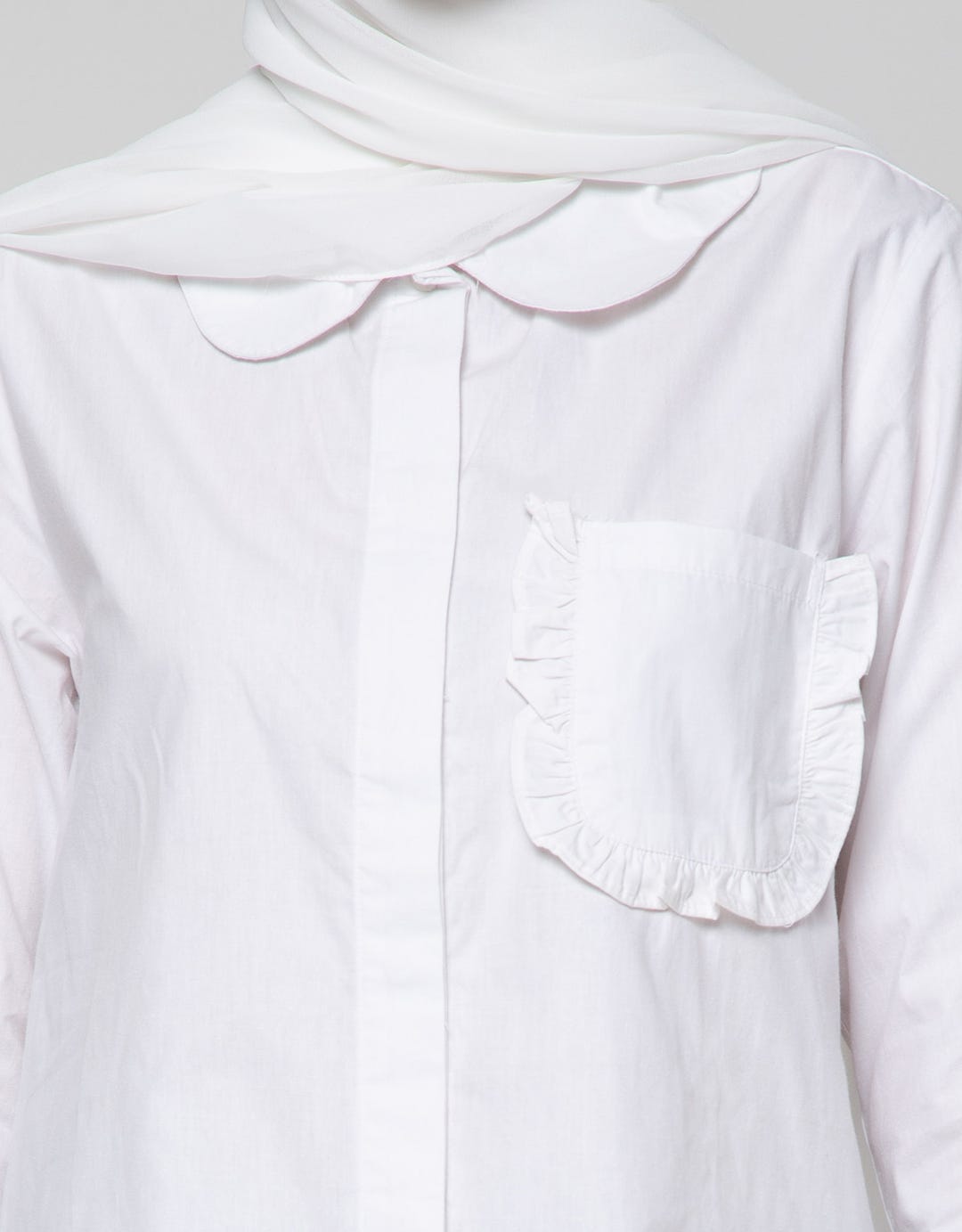 Annisa Long Sleeve Shirt Waved Collar With Ruffle Pocket