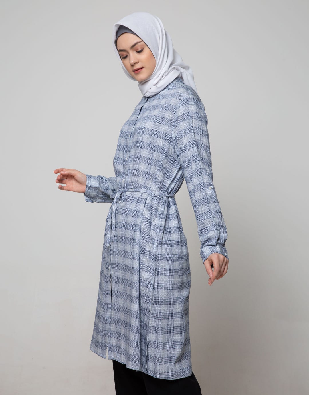 Annisa Long Sleeve Tunic Checks Print Long Shirt