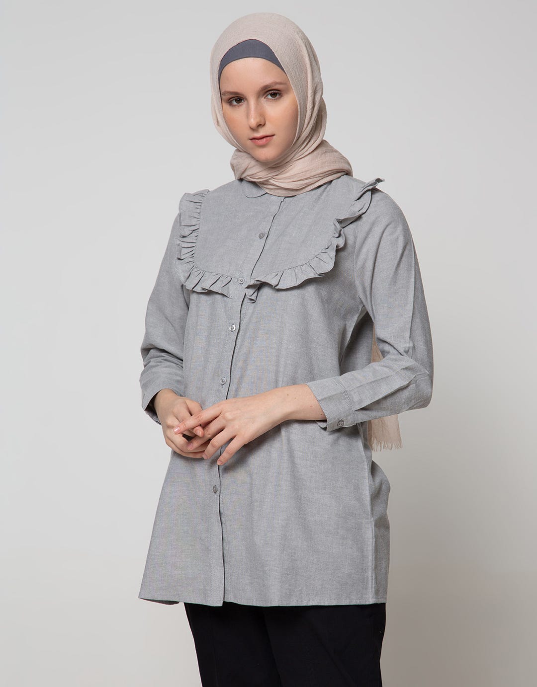 Annisa Long Sleeve Tunic Oxford Shirt With Ruffles On Chest