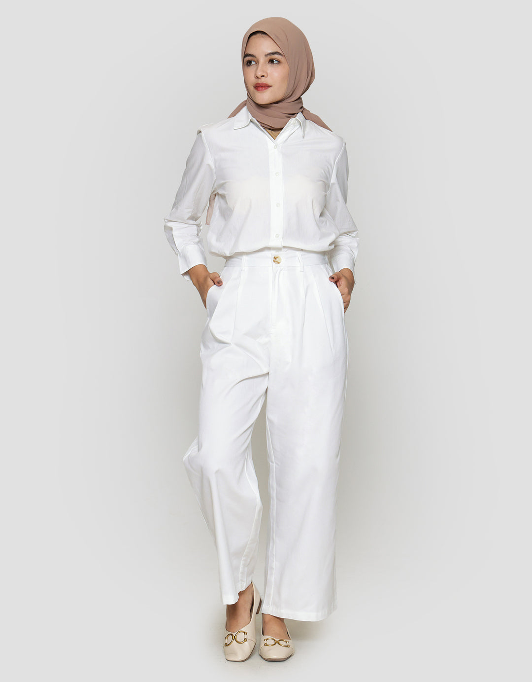 Annisa Soft Twill Buttoned Wide Leg Celana Panjang Wanita