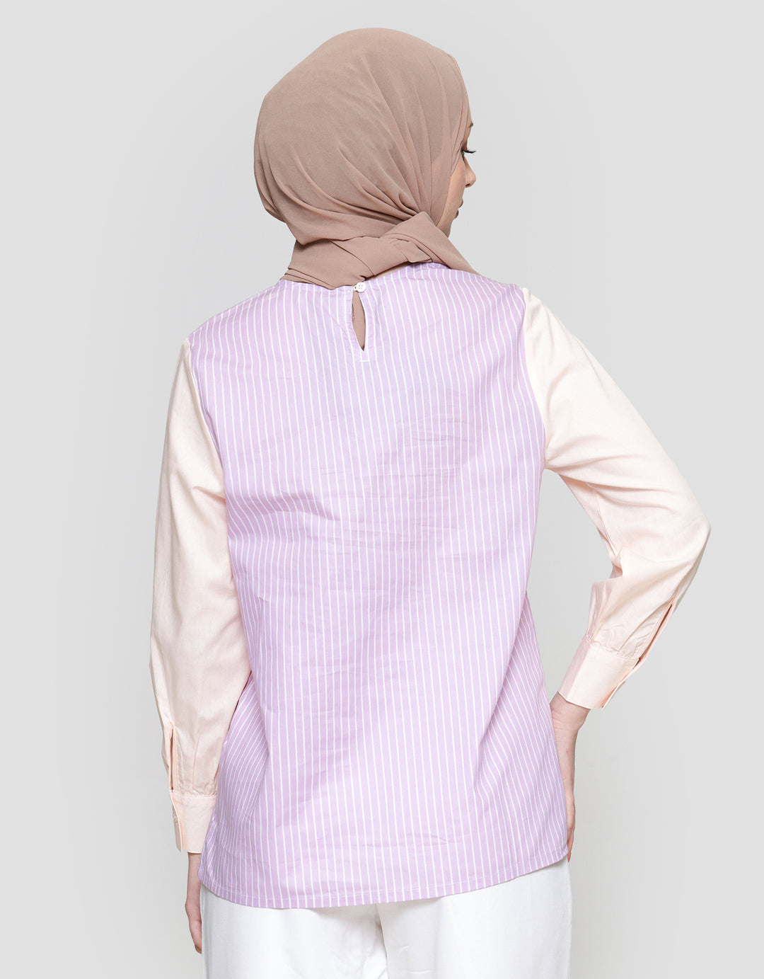 Annisa Stripe Combo Soft Cotton Blouse Wanita