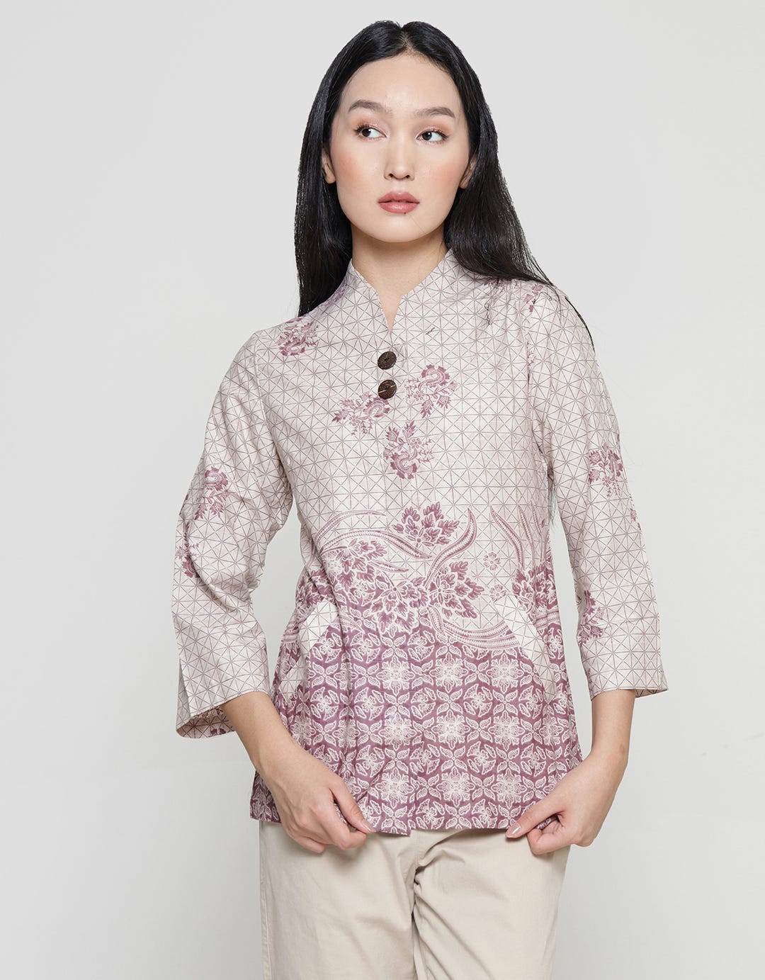 - 7/8 sleeve batik blouse