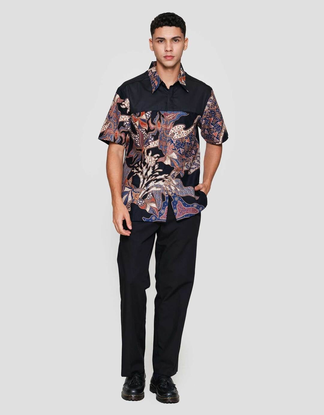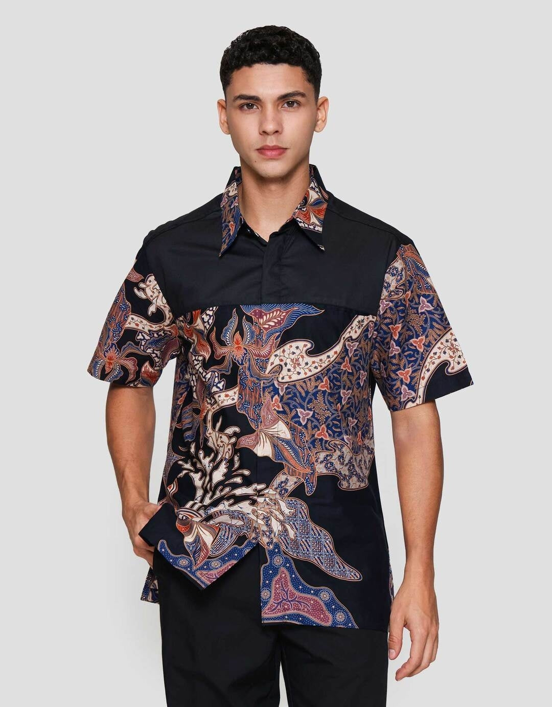 Arjuna Weda Hem Body Fit Bsatik Daun Kemeja Batik Pria