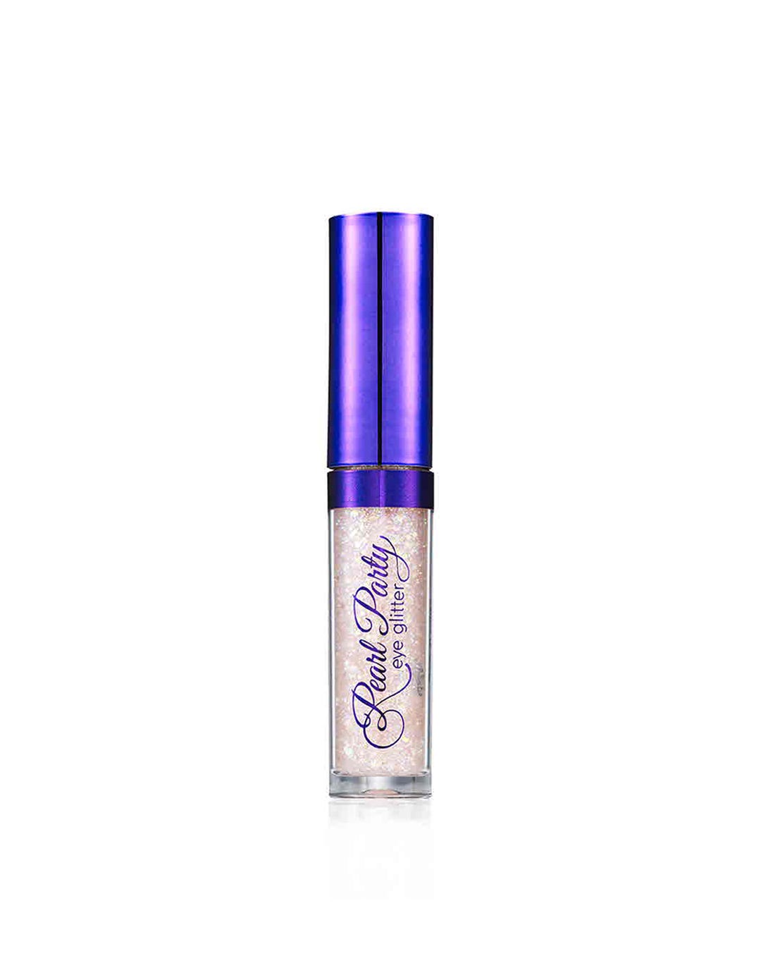 It has a packaging with a purple lid with a transparent body that can be seen the sparkle inside. On the body is printed the text Pearl party Eye Glitter purple typical with beautiful typography.