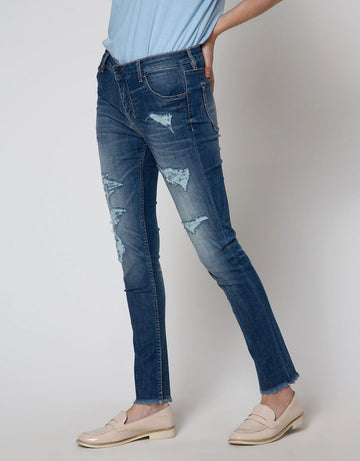 Women's jeans with a ripped design that gives a trendy impression, suitable for you to wear on everyday occasions when doing activities or hanging out with friends.