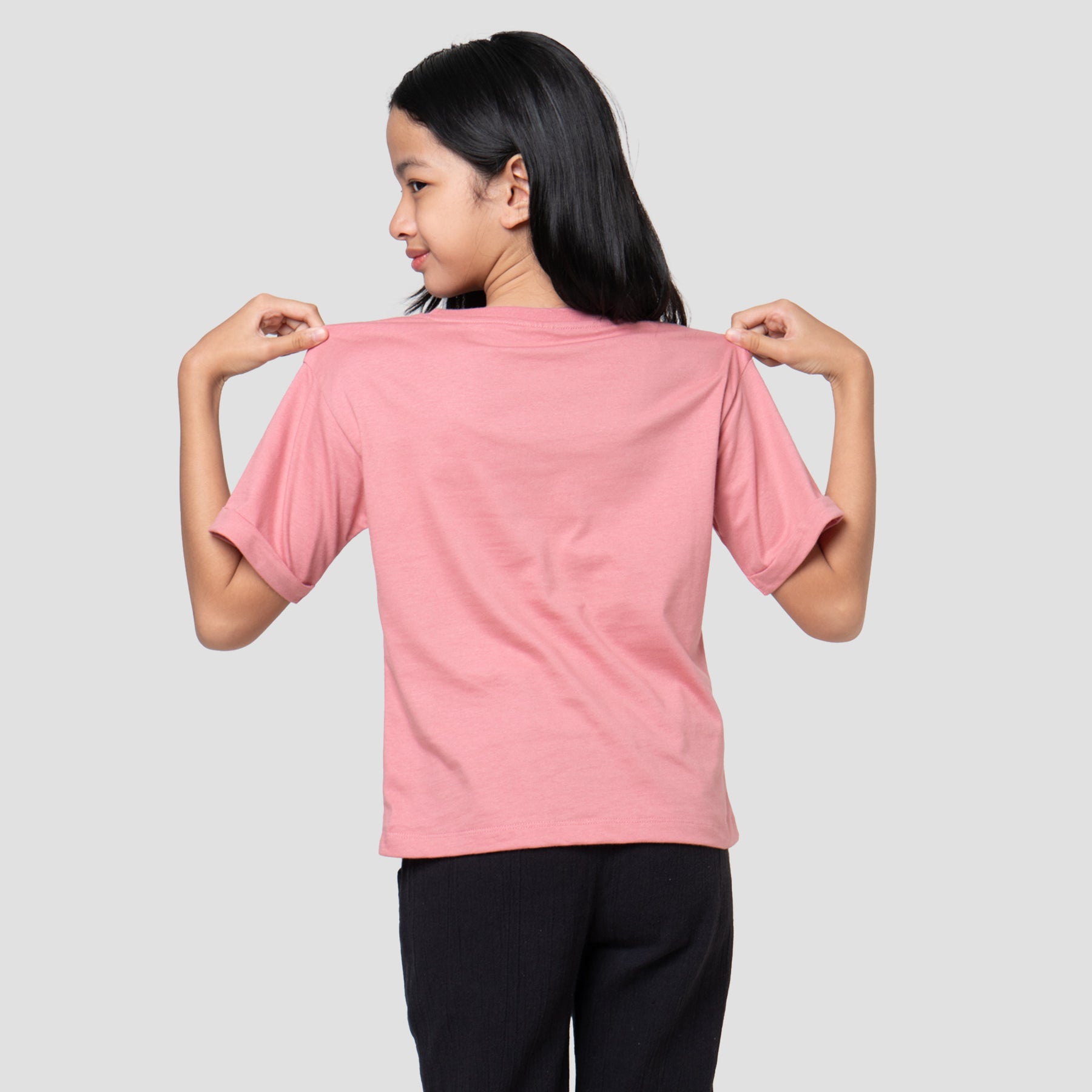 Kaos anak perempuan dengan model yang simple dan casual, cocok untuk dijadikan outifit keseharian saat anak beraktifitas. Bahan yang berkualitas akan nyaman saat digunakan sepanjang hari.