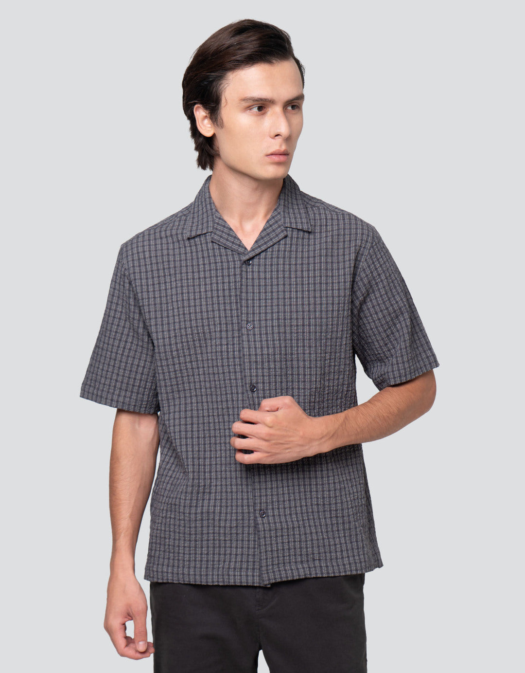 Kemeja pria lengan pendek ini hadir dengan motif kotak-kotak yang memberikan tampilan kasual namun tetap rapi. Desainnya yang sederhana membuat kemeja ini cocok digunakan untuk berbagai aktivitas seperti hangout, bekerja, atau acara santai. Model kerah klasik dan kancing depan memberikan kesan modern yang mudah dipadukan dengan berbagai gaya.