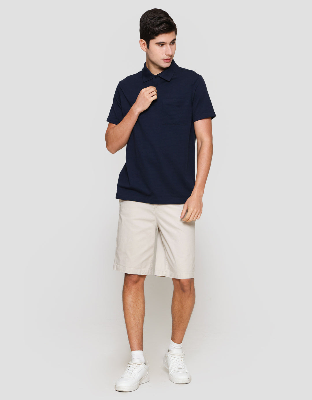 Cole Solid Texture Repeat Pocket Polo Lengan Pendek Pria