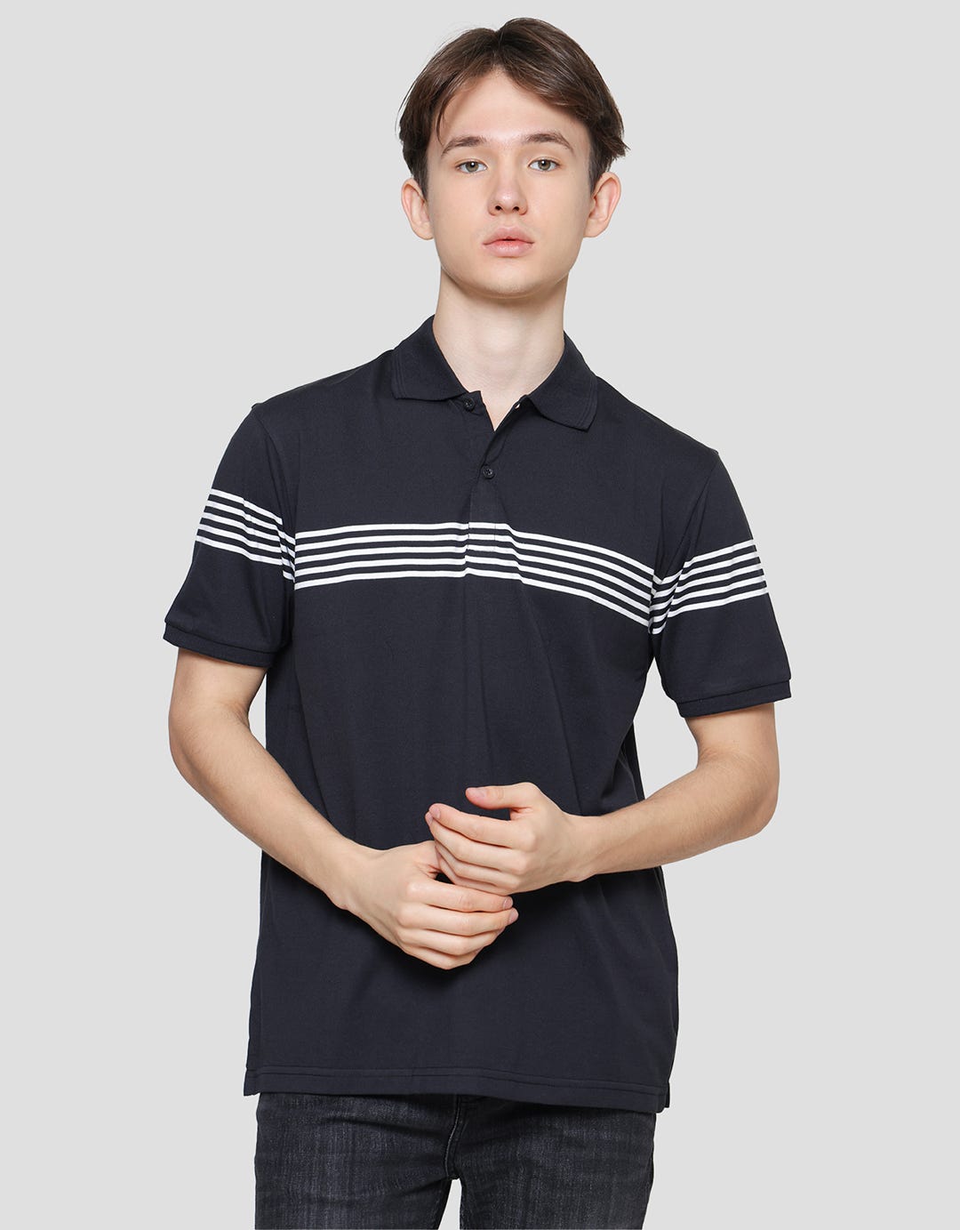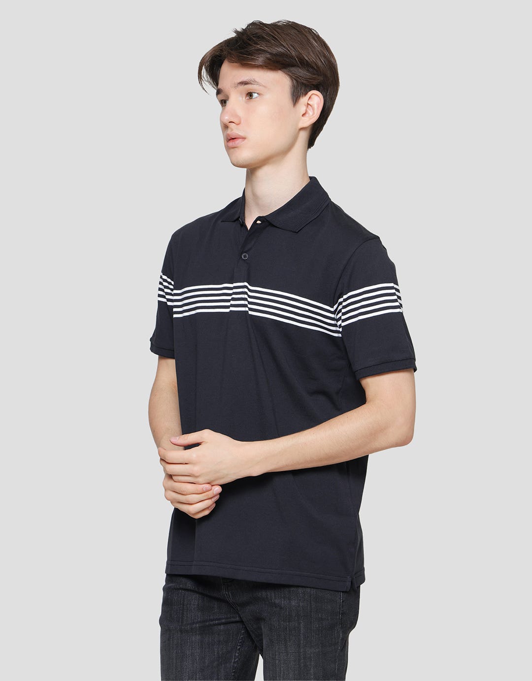 Cole Stripes 5 Chest Lines Men's Short Sleeve Polo Shirt