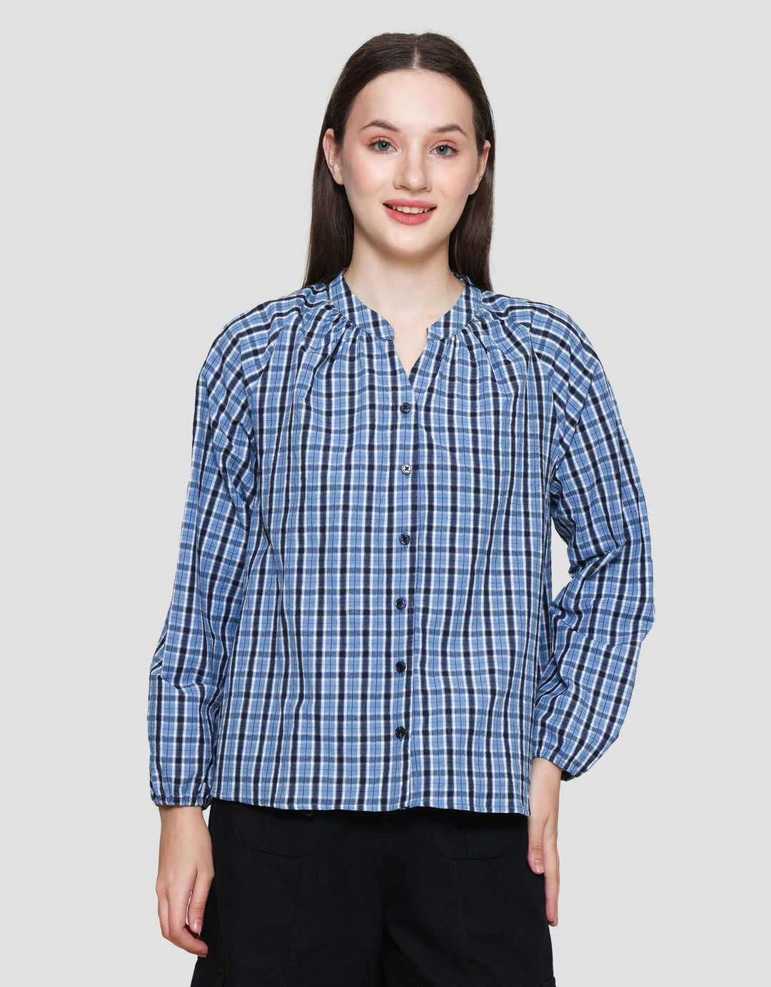 Connexion Kerah Hai Checkered Print Kemeja Wanita