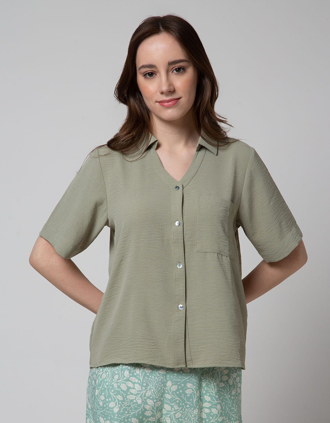 Connexion Short Sleeve Blouse Airflow Crinkle With Pocket Shirt