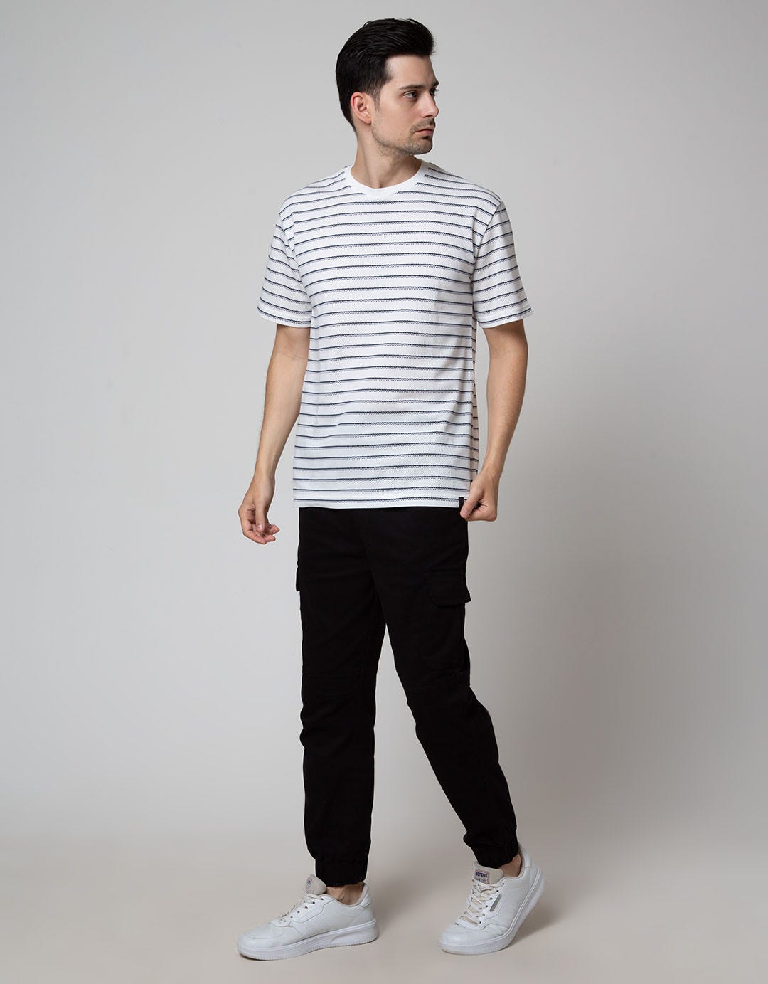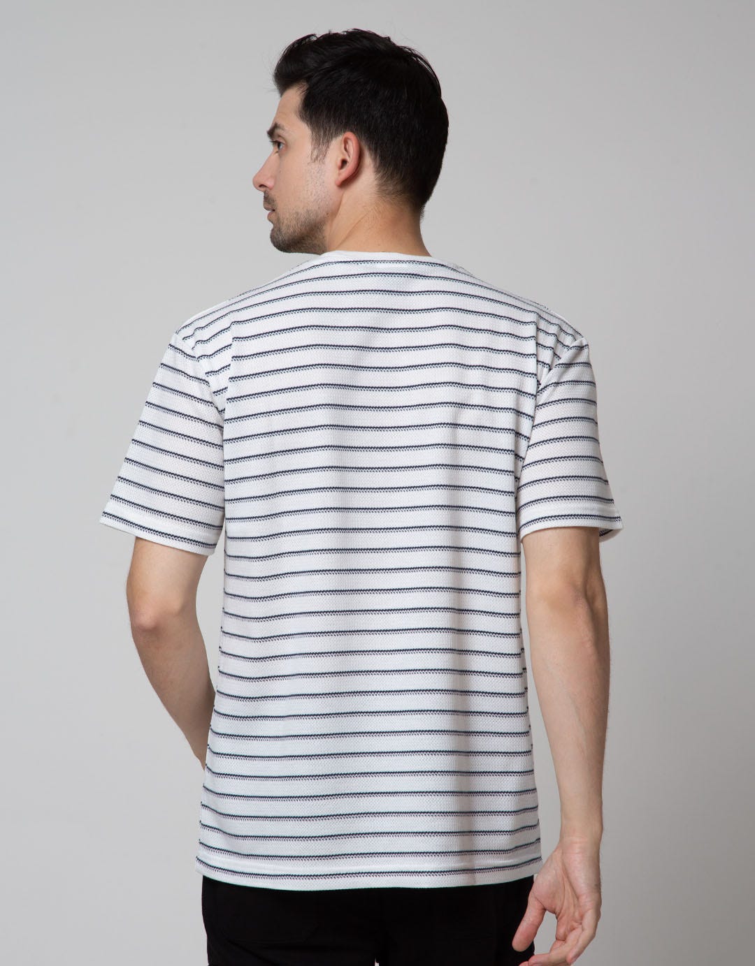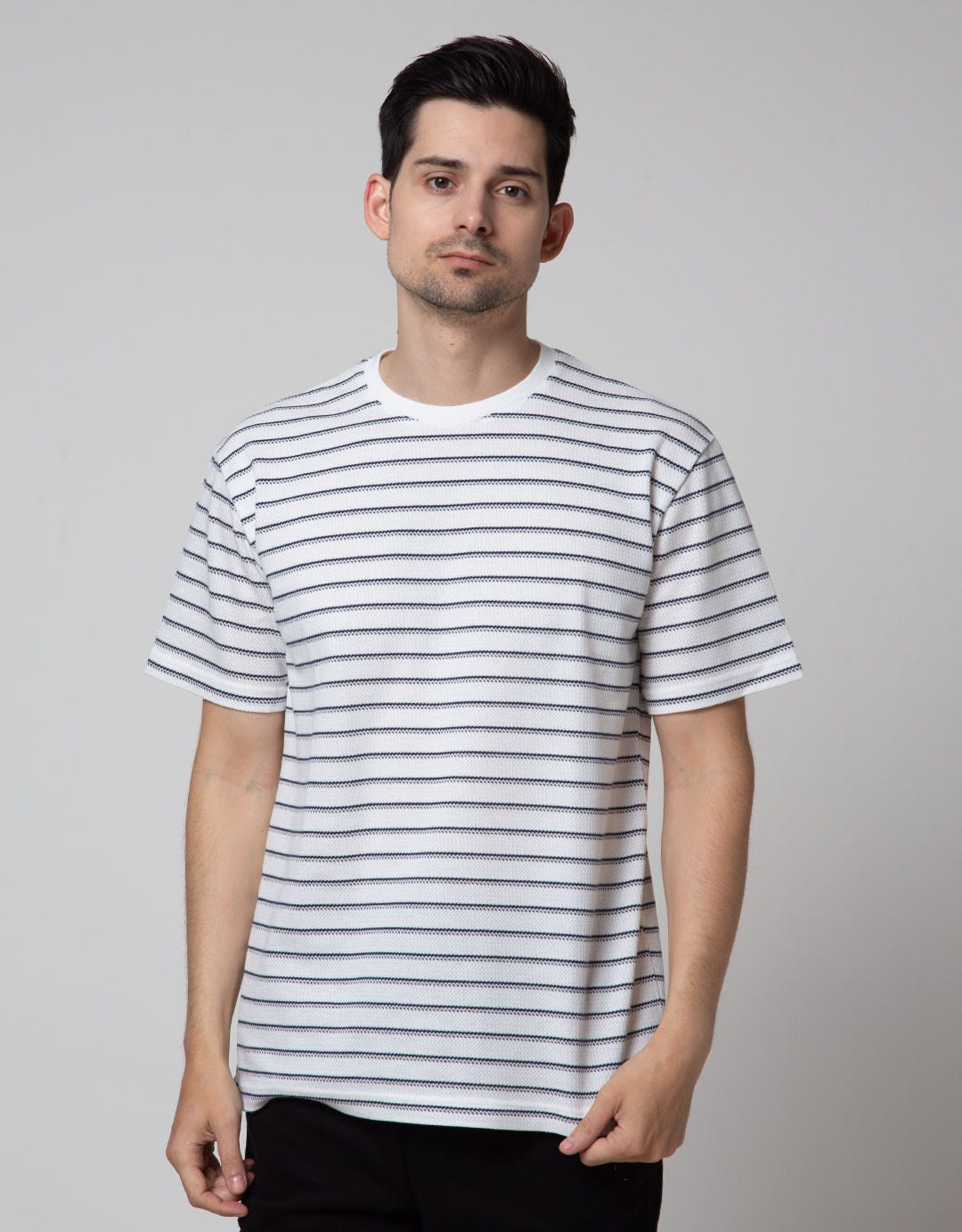 Details Short Sleeve T-Shirt Round Neck Texture Stripes