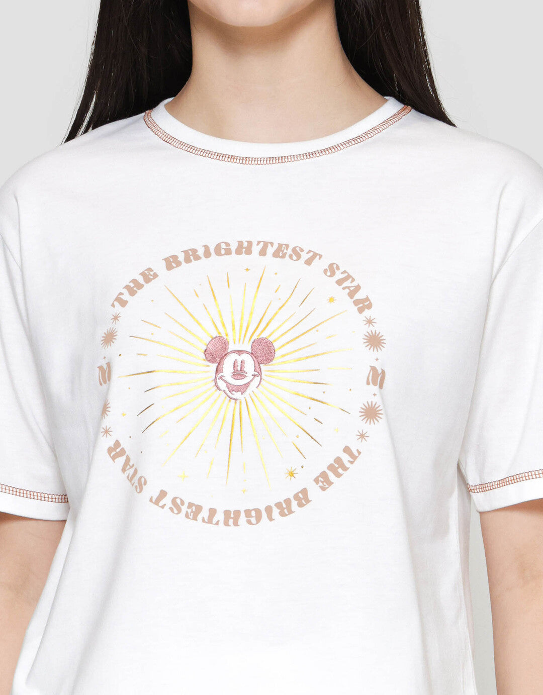 Disney Print Embro Mickey Mouse Kaos Lengan Pendek Wanita