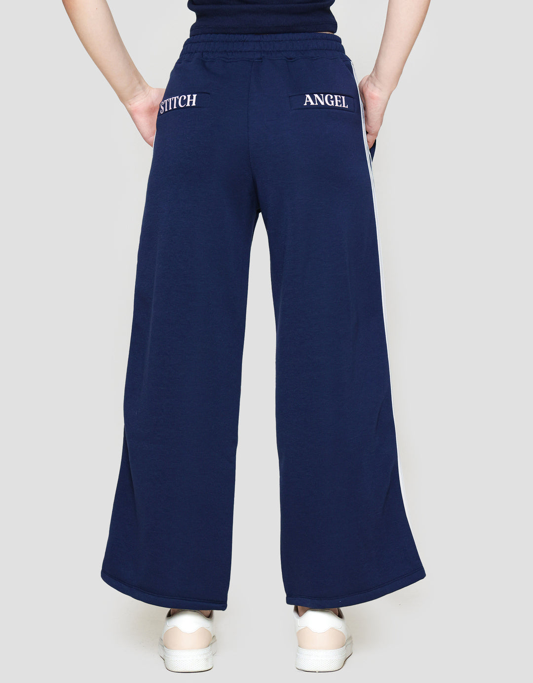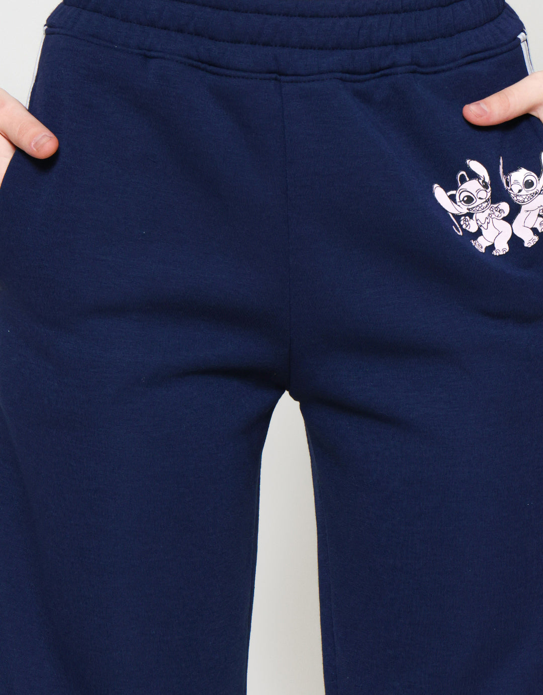 Disney Wide Leg Striped Tape Print Stitch Celana Panjang Wanita