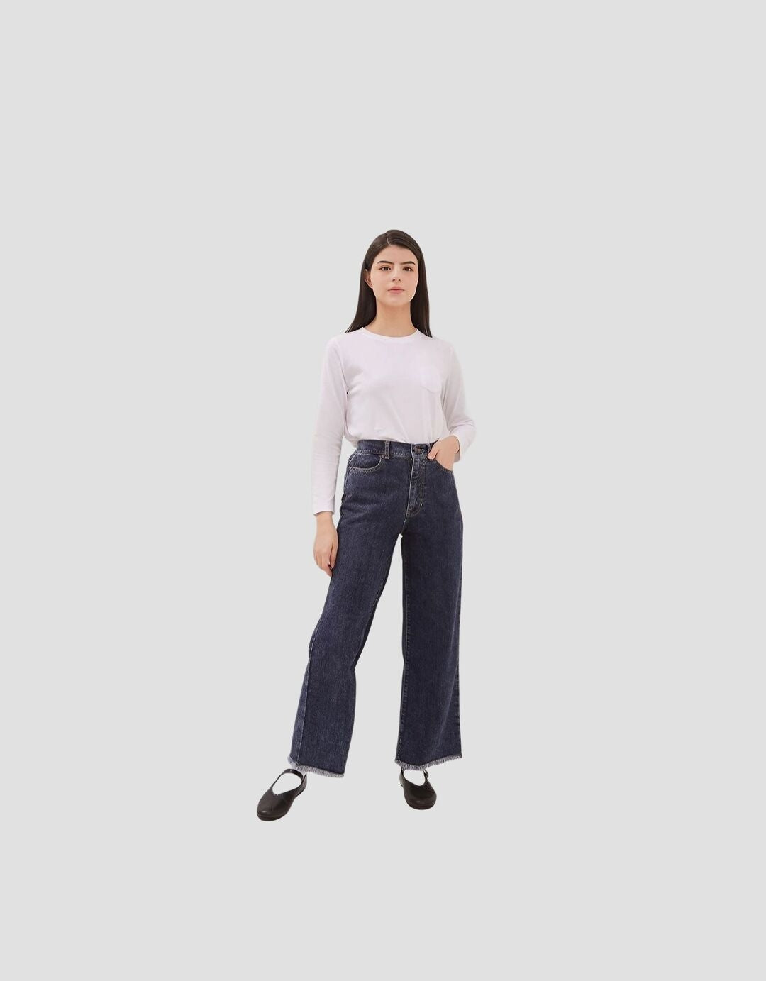 Dust Celana Wide Leg Unfinished Jeans Wanita