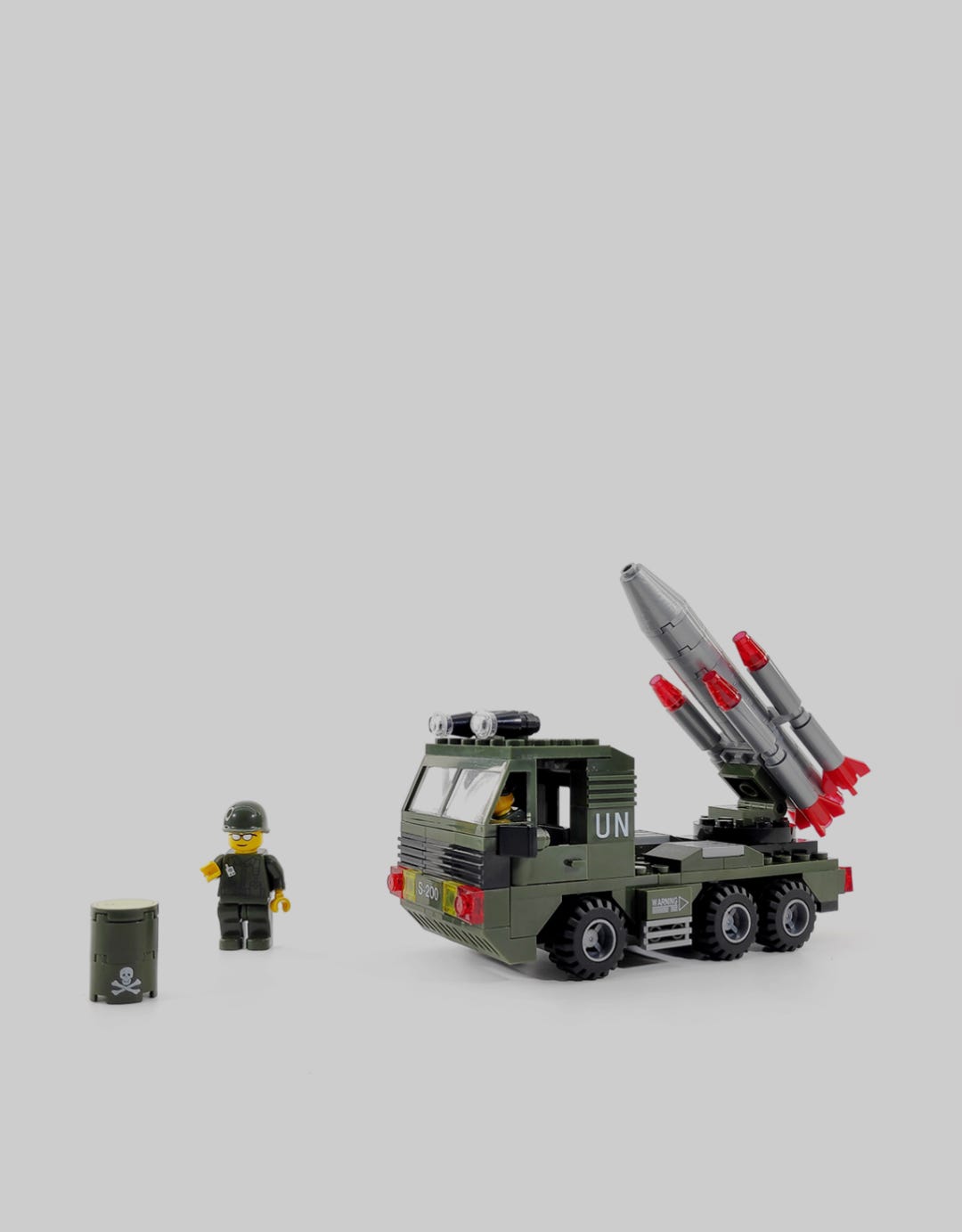 Katagoi Brix toys that can be shaped into MISSILE LAUNCHER CARS, part of several other EMCO brix themes that can be collected by children. L = 26, W = 5, H = 21, Weight = 303 gr