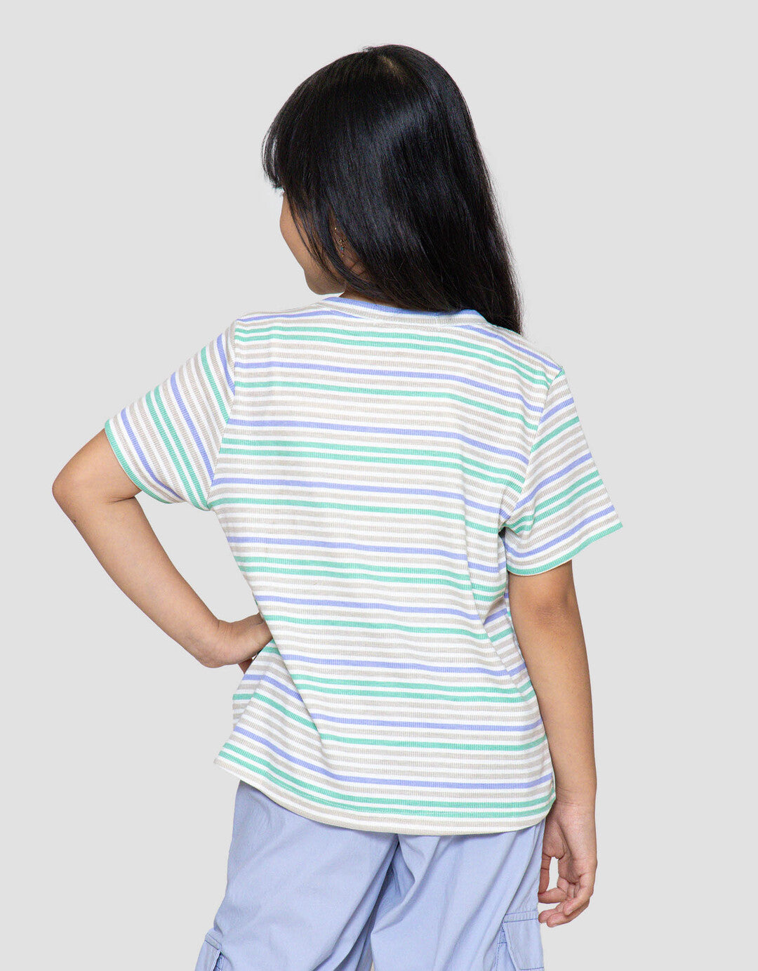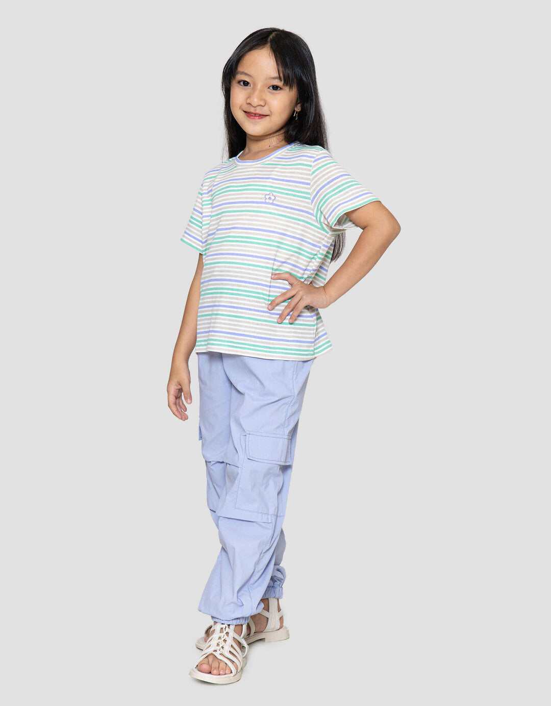 Kaos anak perempuan dengan model yang simple dan casual, cocok untuk dijadikan outifit keseharian saat anak beraktifitas. Bahan yang berkualitas akan nyaman saat digunakan sepanjang hari.