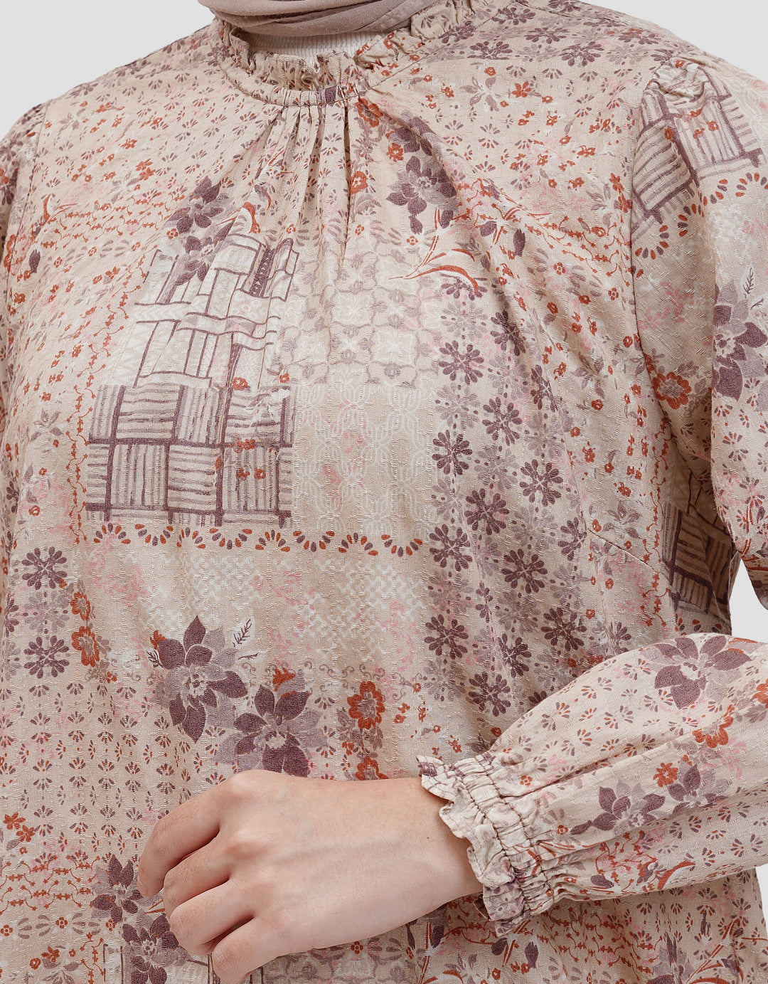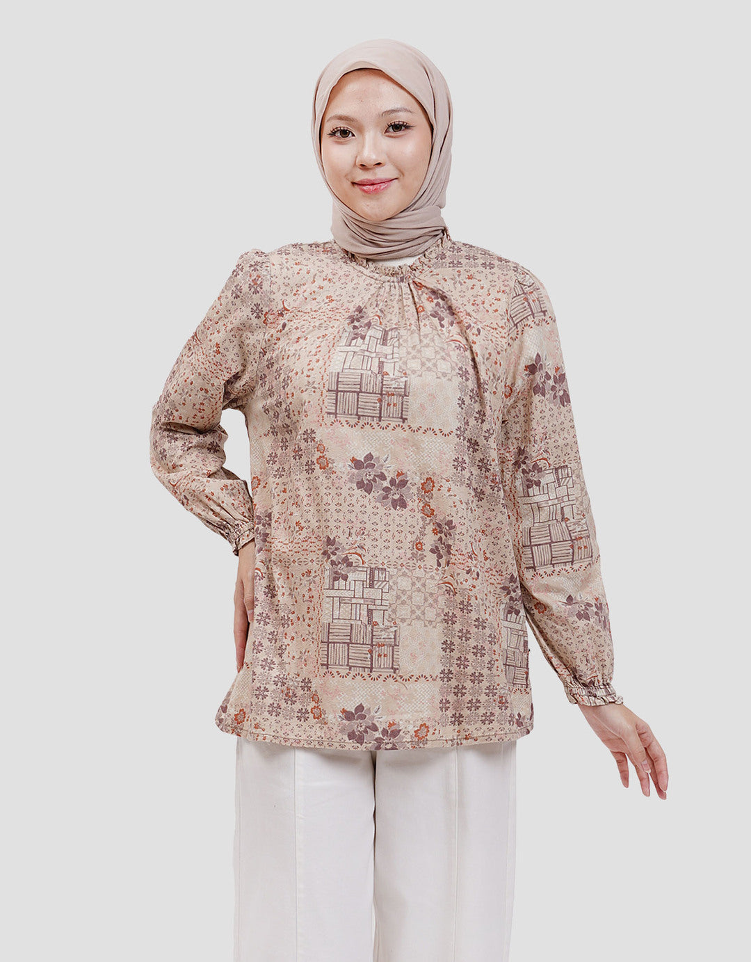 Blouse modis dan penuh gaya menghadirkan tampilan memukau setiap saat. Dilengkapi motif full print dan warna yang soft dengan desain lengan panjang. Sentuhan material katun yang ringan dan nyaman dipakai.