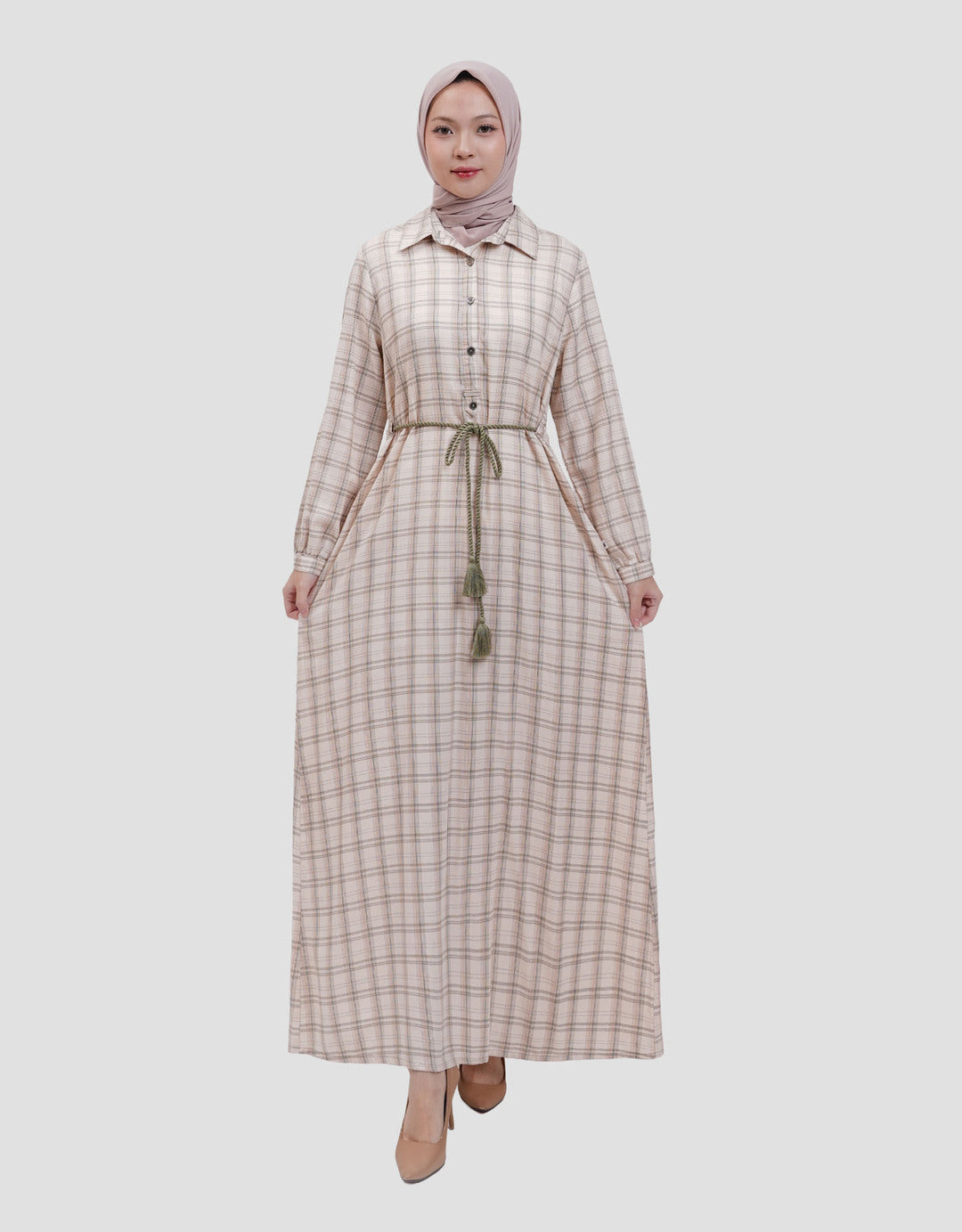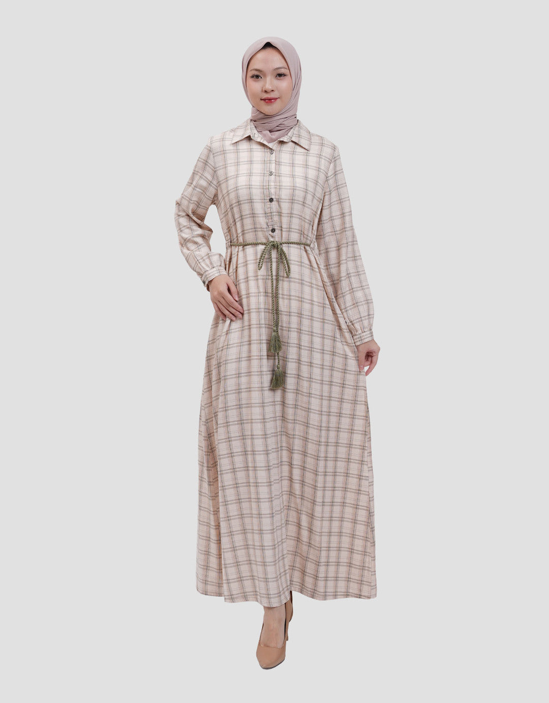 S: Dress ( Lingkar Dada 102cm x Lebar Bahu 40cm x Panjang Baju 138cm)