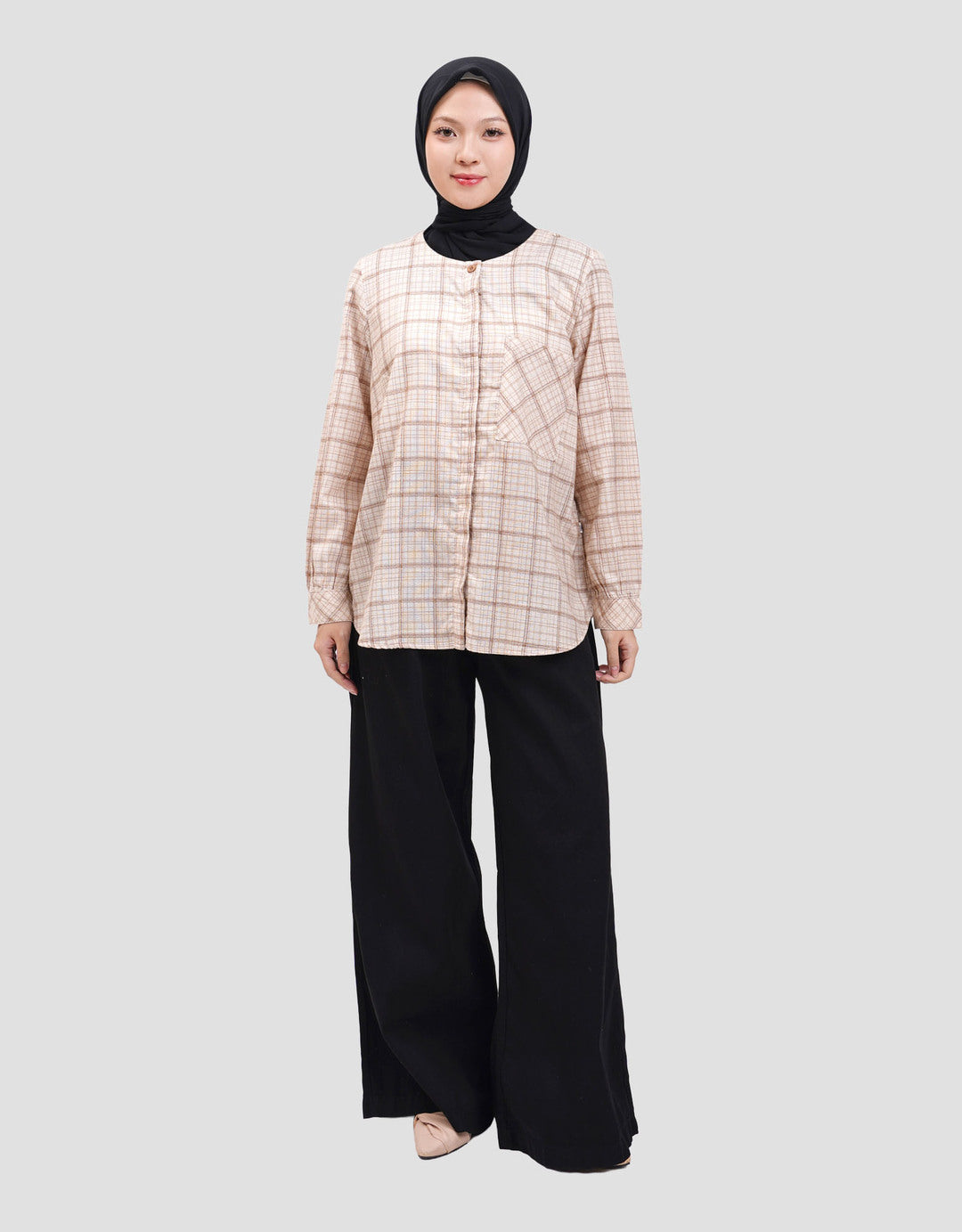 Blouse modis dan penuh gaya menghadirkan tampilan memukau setiap saat. Dilengkapi motif full print dan warna yang soft dengan desain lengan panjang. Sentuhan material katun yang ringan dan nyaman dipakai.