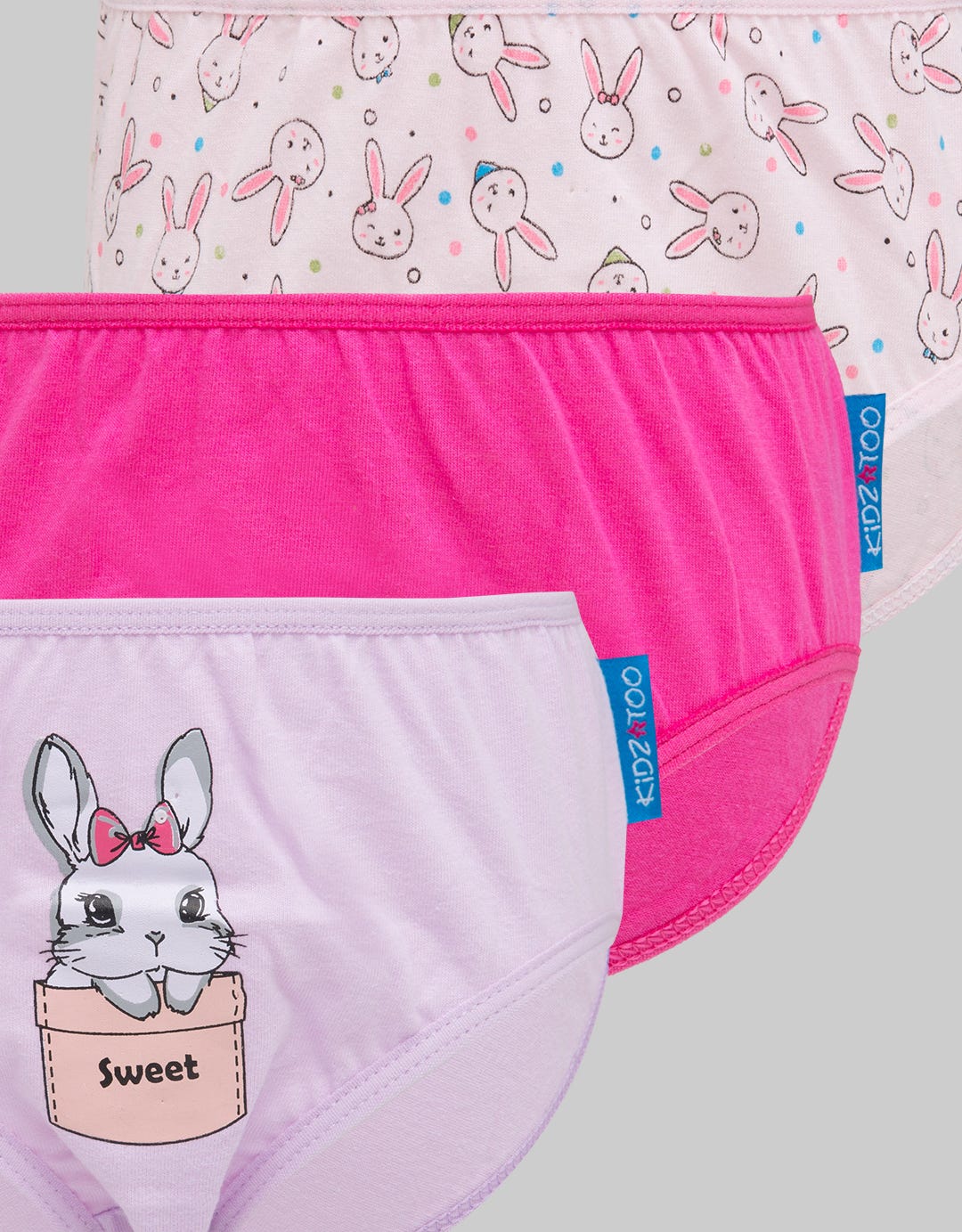 Kidz Too Brief Pack 3 Underwear Girls Bunny Pocket