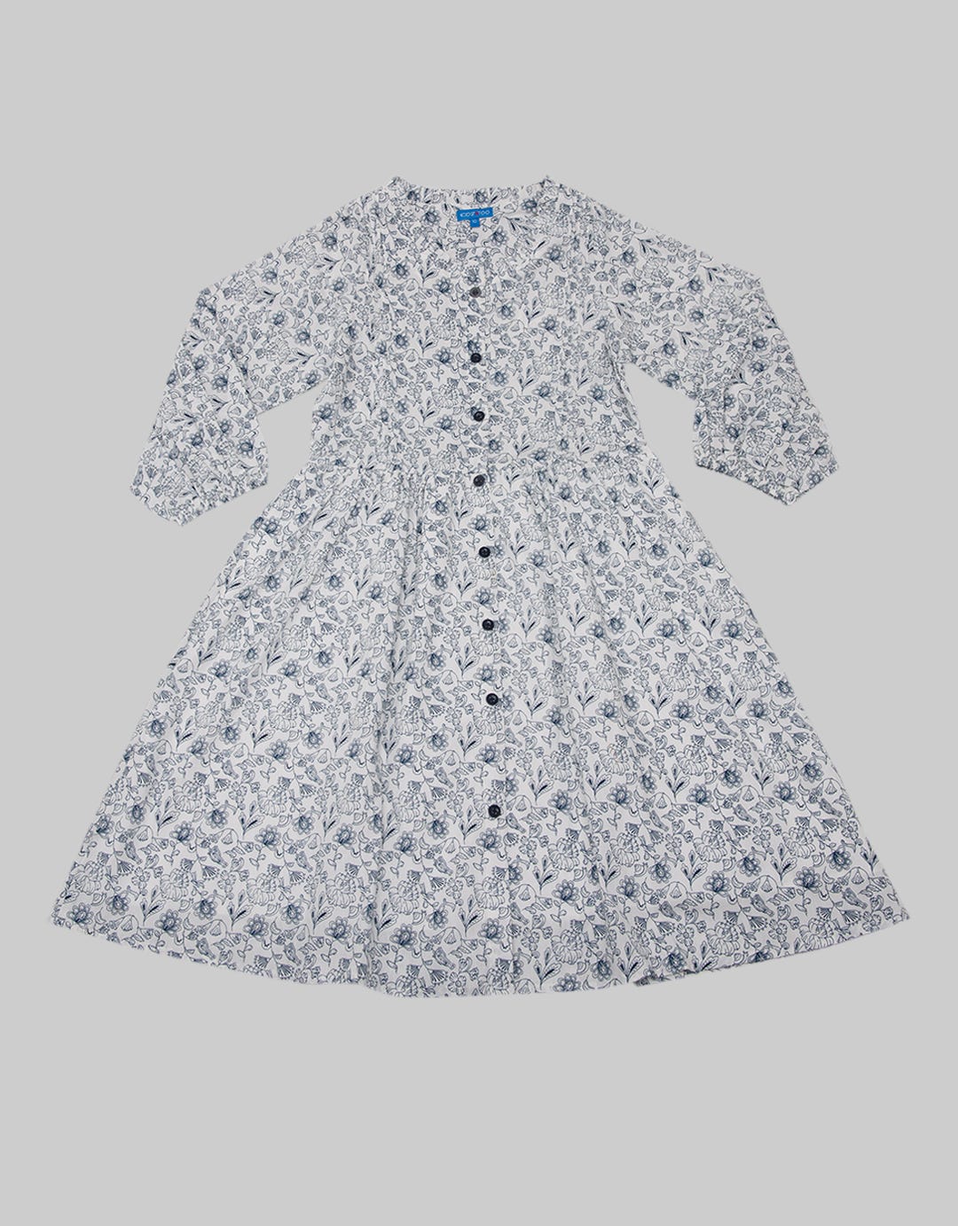Kidz Too Long Sleeve Midi Dress Full Print Front Button Hands