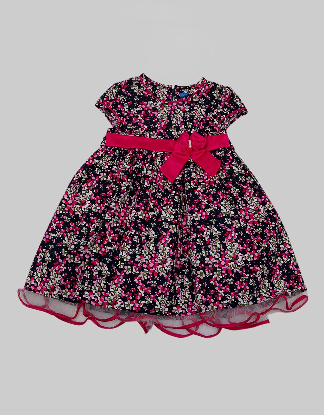 Kidz Too Short Sleeve Midi Dress Ribbon With Tile Bottom