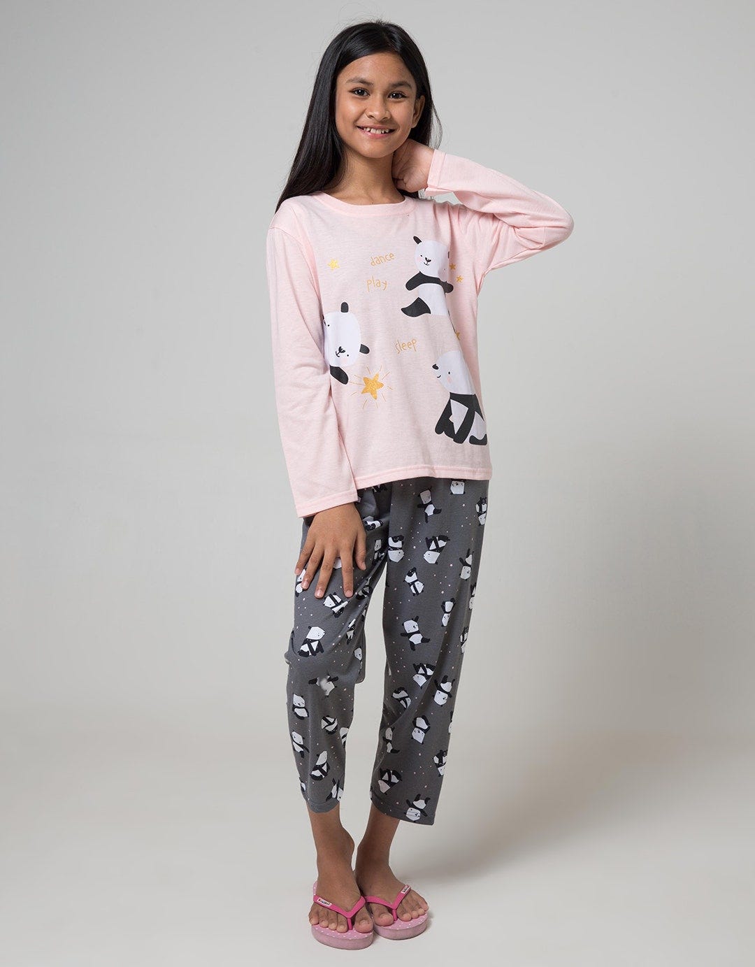 Kidz Too Top - Bottom Oblong Pajamas Set Long Sleeve Short Pants Panda