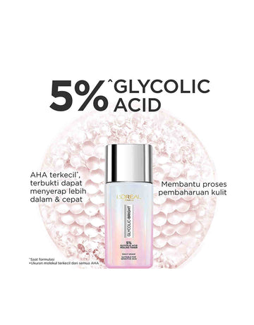 L’Oréal Skincare Laboratories mengembangkan GLYCOLIC-BRIGHT GLOWING PEELING TONER yang diformulasikan dengan 5% Glycolic Acid, bahan yang digunakan oleh dermatologis untuk prosedur peeling, diformulasikan untuk hasil yang optimal dan sesuai digunakan setiap hari. Terbukti secara klinis untuk membuat kulit tampak segar, cerah, dan bercahaya. Diuji oleh dermatologis pada semua warna kulit.