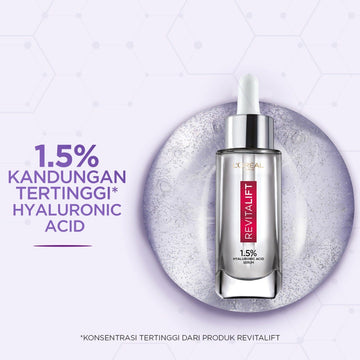 Supple and smooth skin instantly brighter with Loreal facial serum. Contains Macro Hyaluronic Acid which functions to moisturize the face intensely for smooth skin and also Micro Hyaluronic Acid which absorbs into the skin to make the skin supple from within with the correct use of serum.