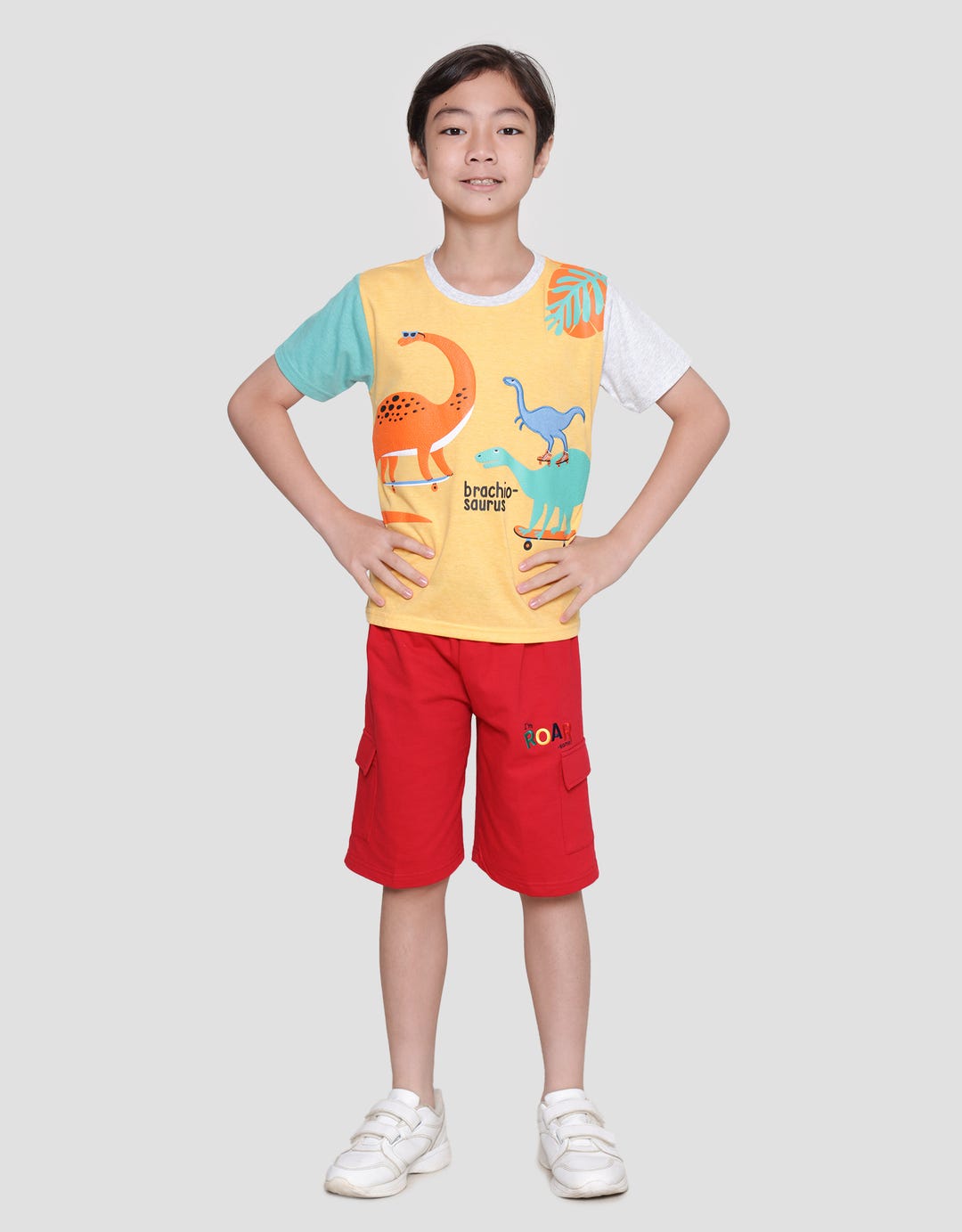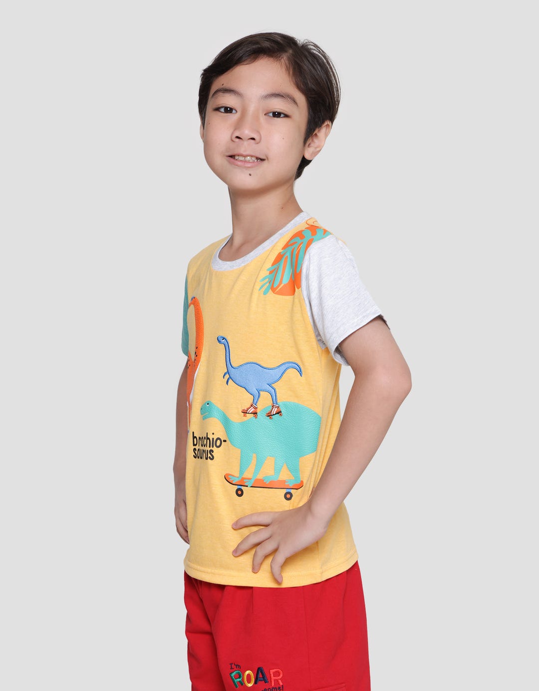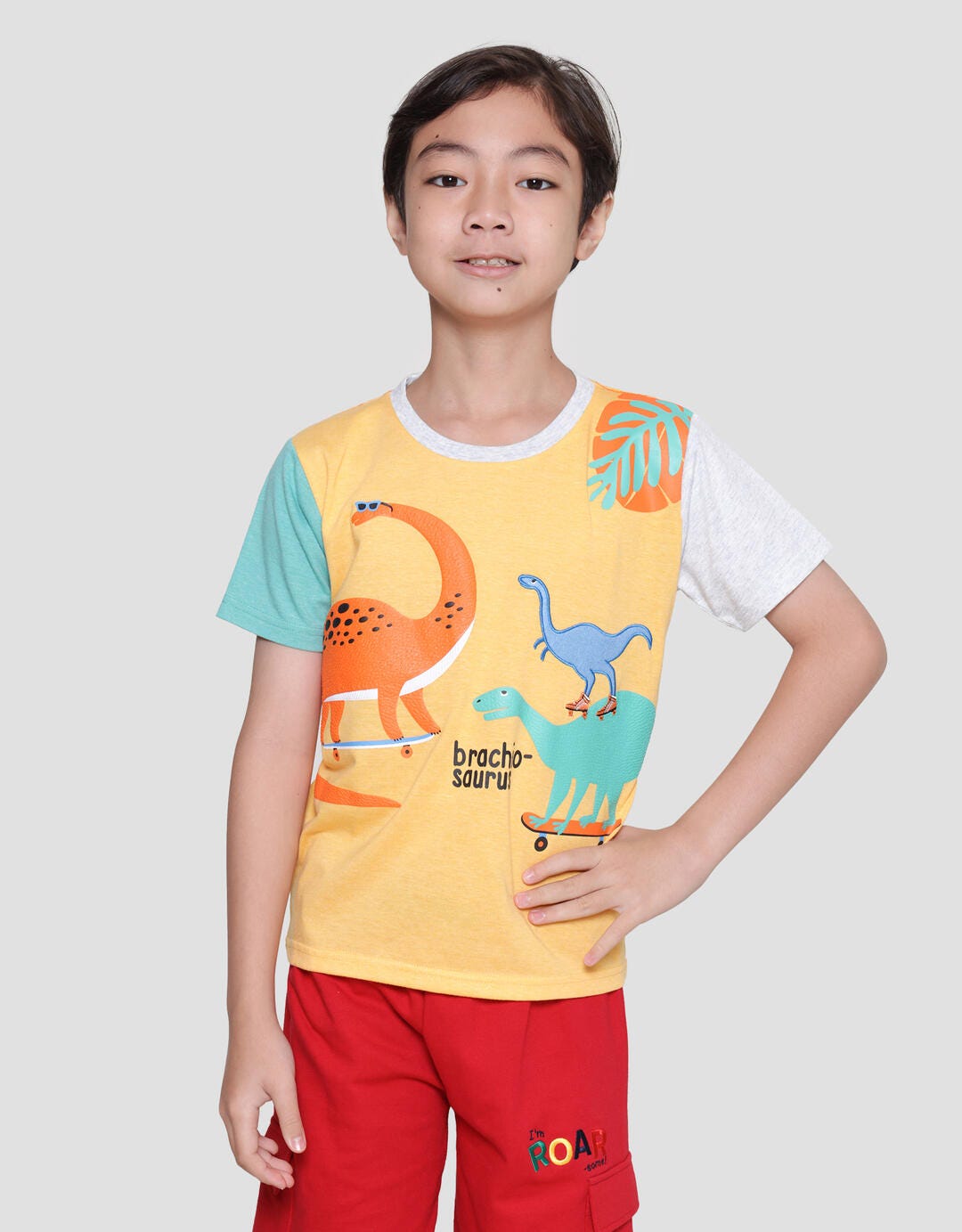 Boys' t-shirts with simple and casual designs, suitable for children to wear on their precious moments to support their appearance to be more charming. The simple model is easy to match with their favorite bottoms and makes them comfortable in their daily activities.