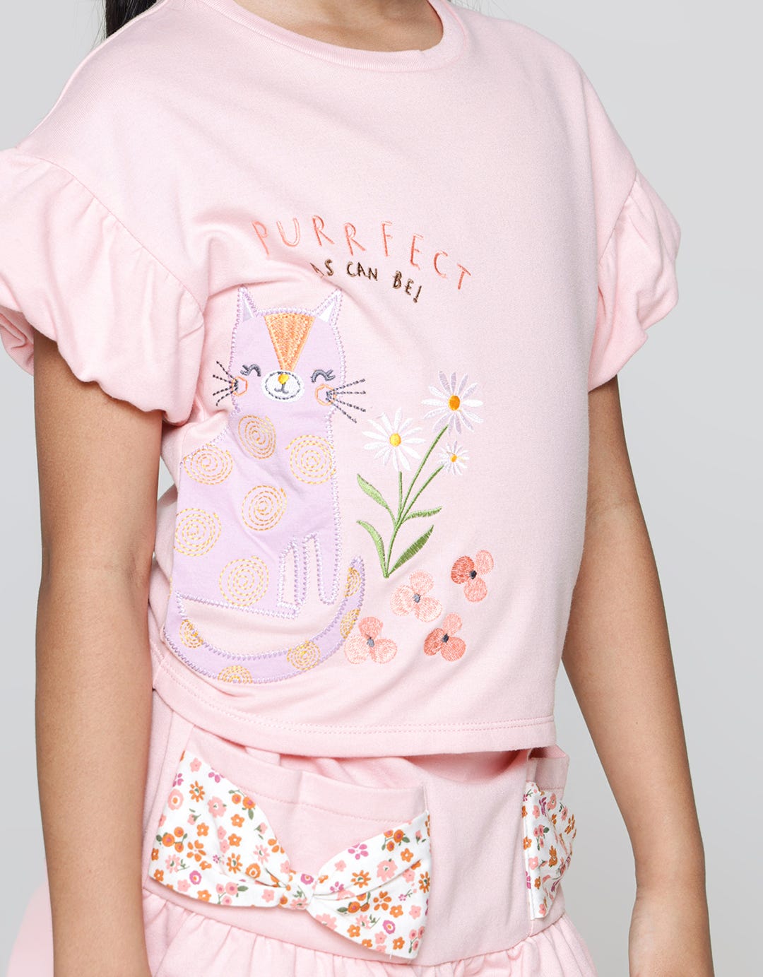 Little M Balloon Sleeve Cat Girls T-Shirt
