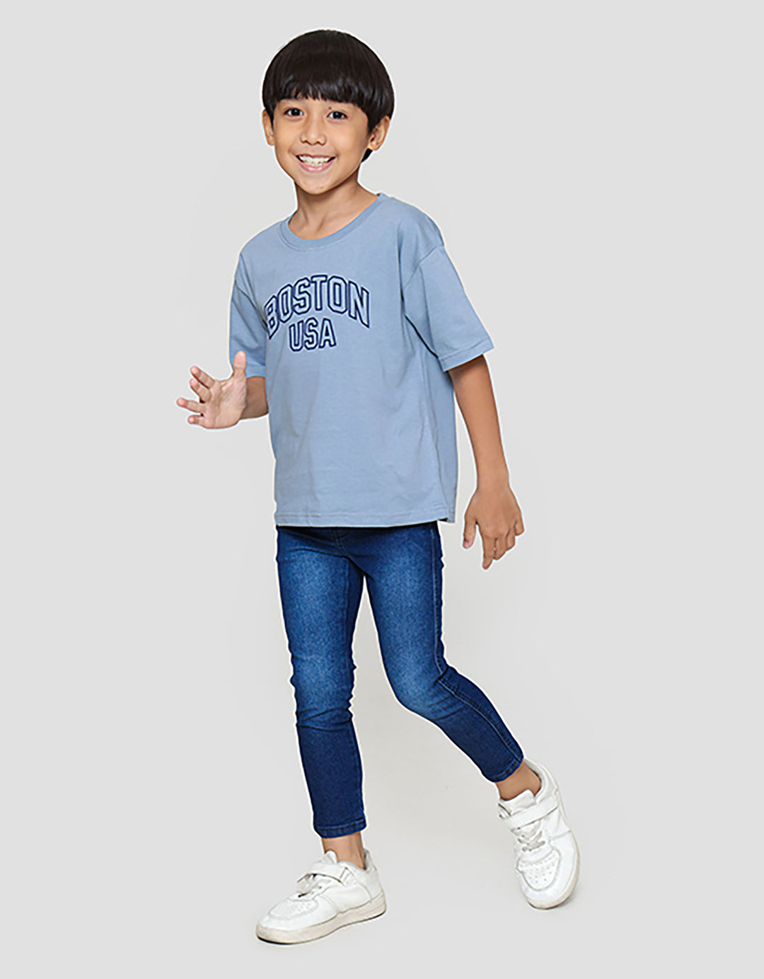 Kaos anak laki-laki dengan design yang simple dan casual, cocok untuk digunakan anak pada moment berharga mereka untuk menunjang penampilan anak menjadi lebih menawan.