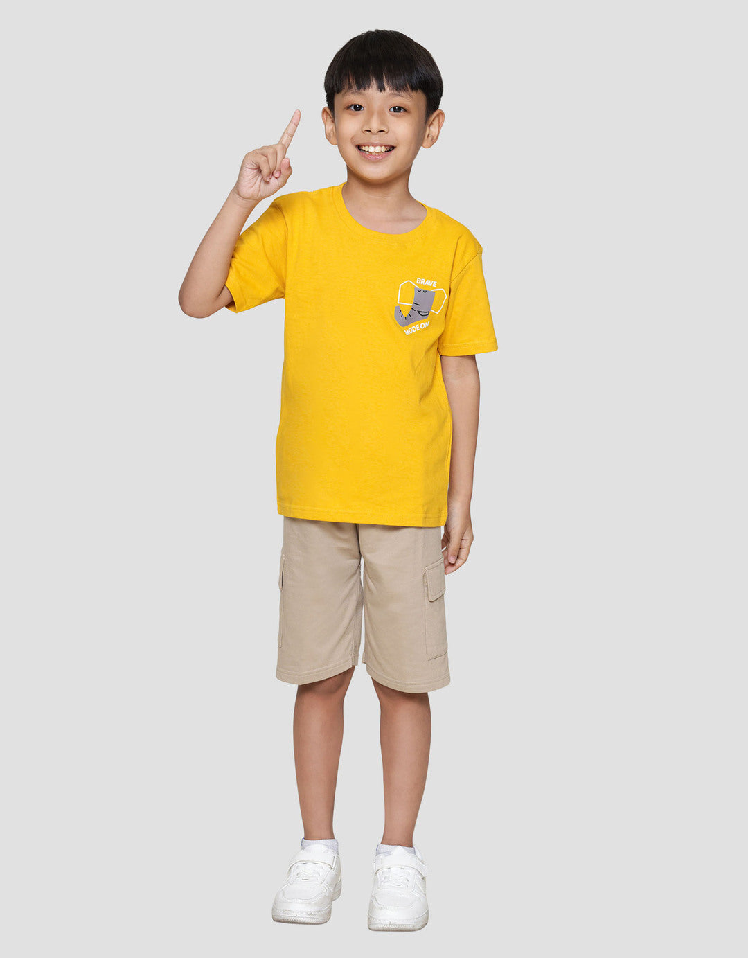Kaos anak laki-laki dengan design yang simple dan casual, cocok untuk digunakan anak pada moment berharga mereka untuk menunjang penampilan anak menjadi lebih menawan.