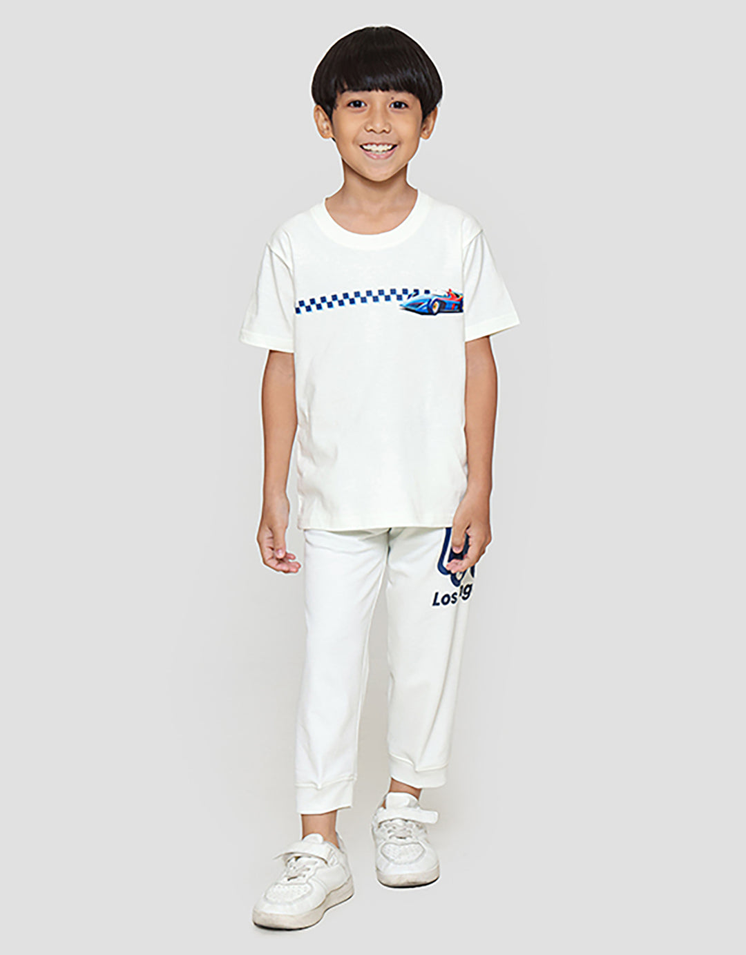 Kaos anak laki-laki dengan design yang simple dan casual, cocok untuk digunakan anak pada moment berharga mereka untuk menunjang penampilan anak menjadi lebih menawan.