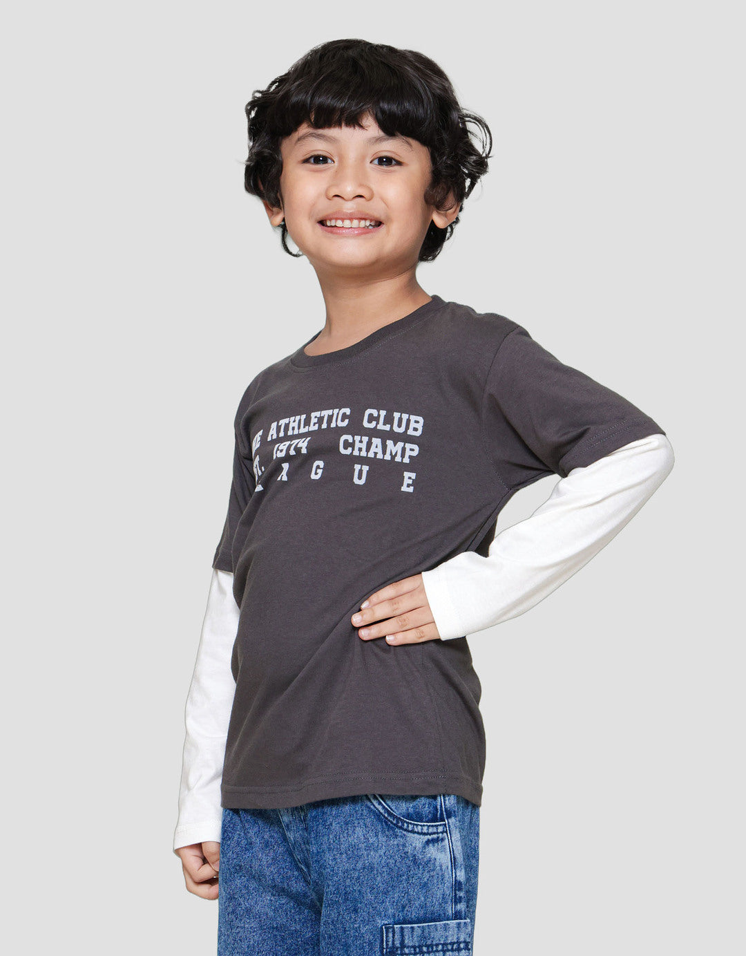 Kaos anak laki-laki dengan design yang simple dan casual, cocok untuk digunakan anak pada moment berharga mereka untuk menunjang penampilan anak menjadi lebih menawan.