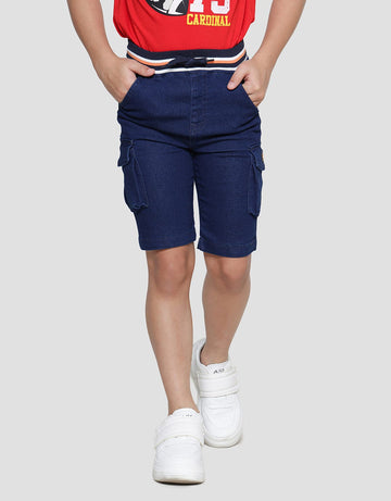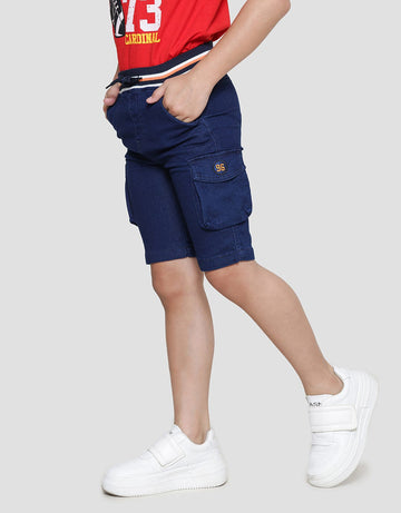 Little M Crop Terry Solid Cargo Boys Denim Shorts