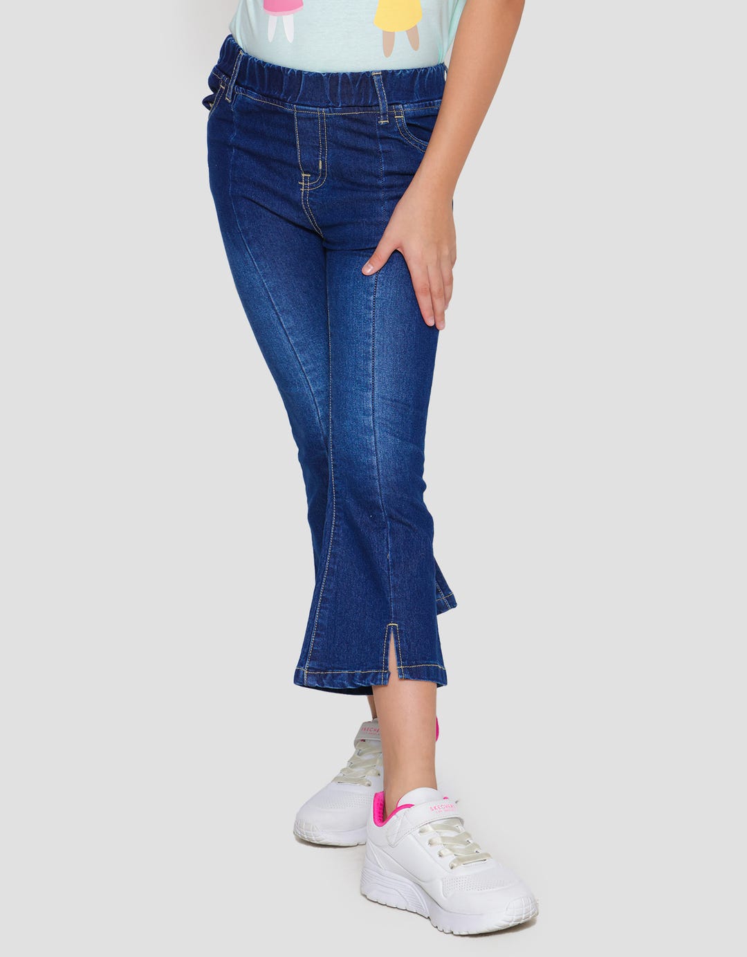 Little M Denim Jegging Flare Split 2 Girls Long Pants