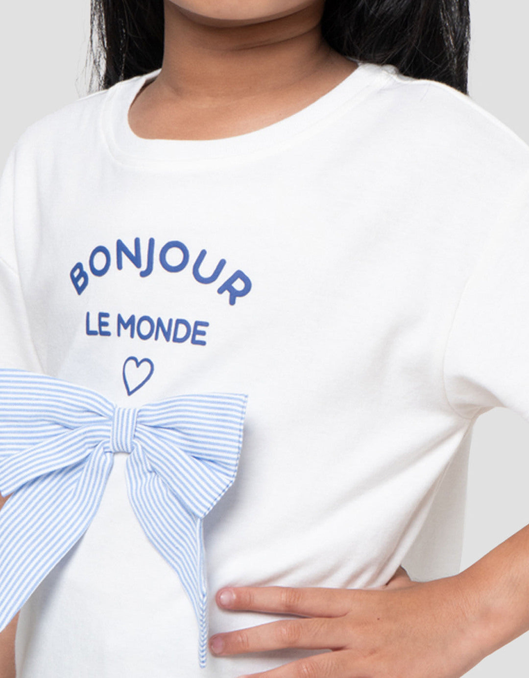 Little M Double Knit Bonjour Pita Kaos Anak Perempuan