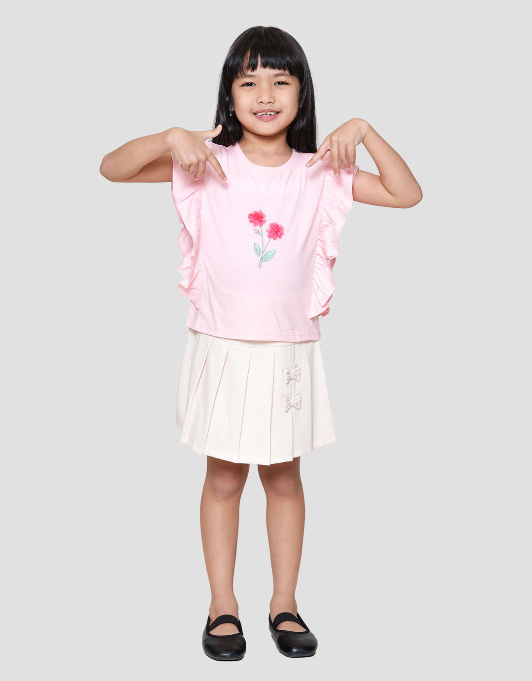 Little M Double Sleeve Bunga Kain Kaos Anak Perempuan