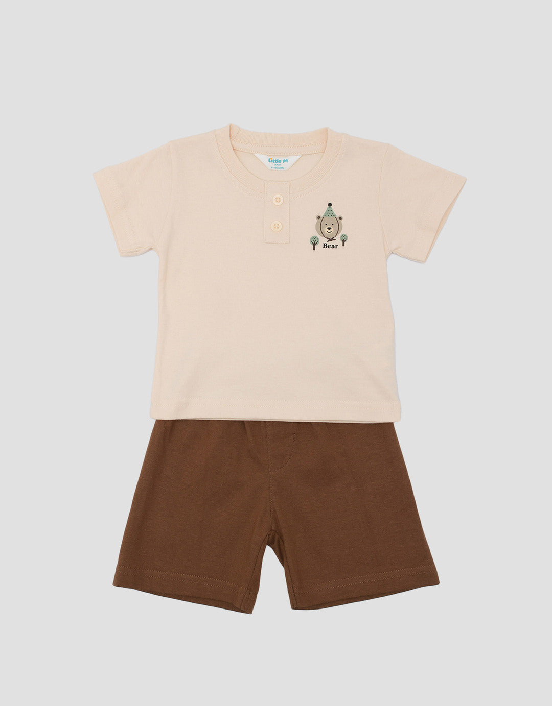 Little M Fake Henley Bear Pakaian Setelan Bayi