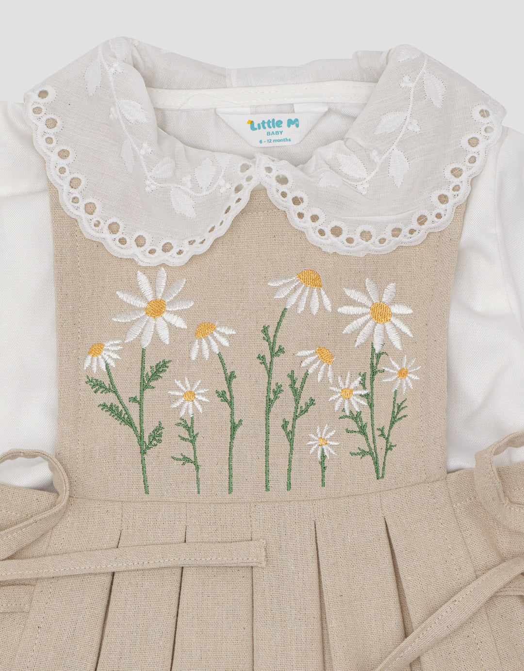 Little M Flower Muslim Overalls 2 Pcs Midi Dress for Baby Girls