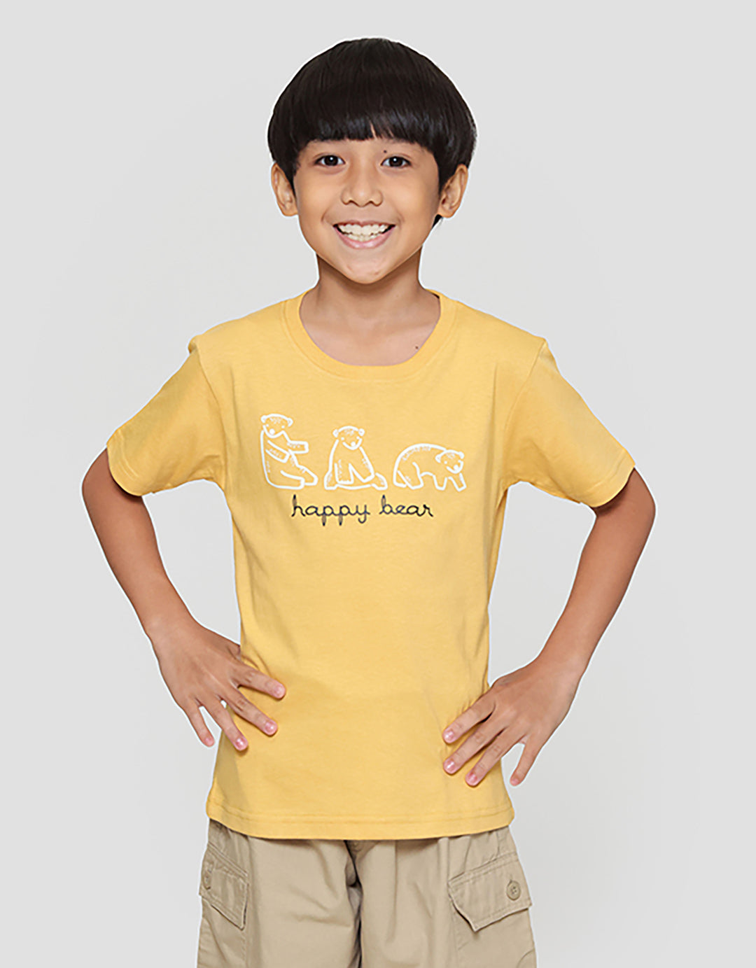 Kaos anak laki-laki dengan design yang simple dan casual, cocok untuk digunakan anak pada moment berharga mereka untuk menunjang penampilan anak menjadi lebih menawan.